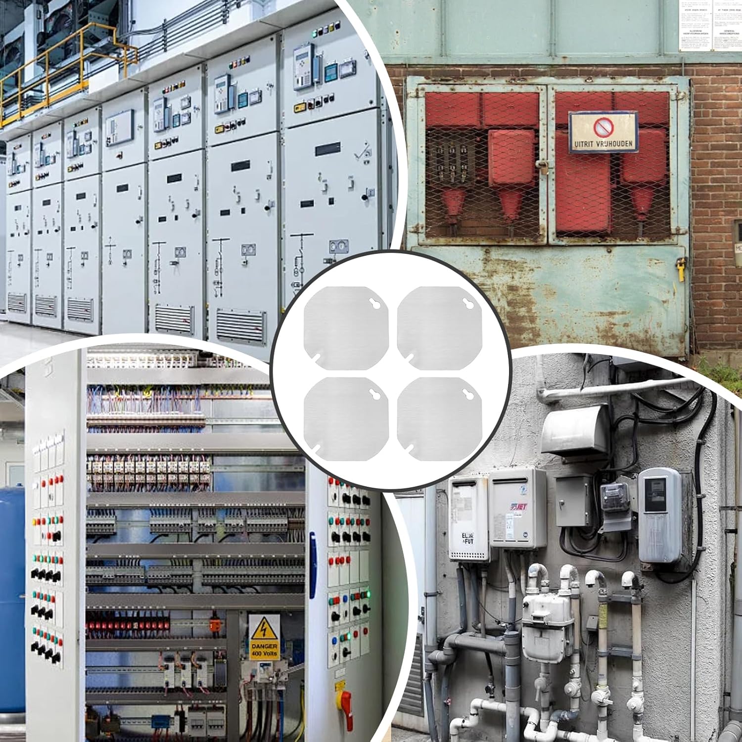 Welcome to visit our store. We are devoted to providing you with quality products and services. If you have any questions about the goods, we are very happy to serve you.Piriuuo 4 Pcs Octagon Electrical Box Cover, Galvanized Stainless Steel Junction Box Cover Metal Electrical Box Cover for 4 Inch Octagonal/Square Electrical BoxSpecifications:Product Name: 4pcs electric box cover plateMaterial: stainless steelProduct Size: 9.5 x 9.5 cm / 3.75 x 3.75 inPackaging Size: 20 x 12 x 0.8 cmNet Weight: 232 gGross Weight: 232 g Packaging Method: baggedPackaging List: 4 x octagonal junction box cover plate