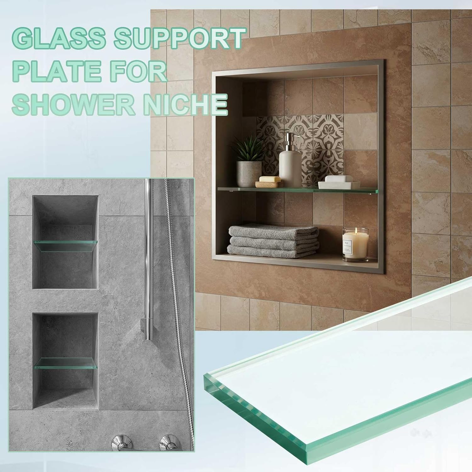 | Included Components | 2 × Glass shelf for shower niche |