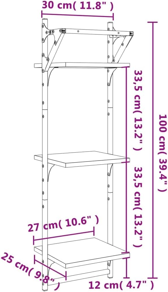 This 3-Tier Floating Wall Shelf Set in Smoked Oak is a stylish and practical solution for your home decor needs. With its sleek and modern design, these shelves not only give you enough storage for your favorite decorative items but also amp up the look of any room, making them perfect for living rooms or bathrooms where organization and style matter.Space-Efficient Storage: These floating shelves give you extra storage without taking up floor space, which is fab for smaller areas. Ideal for organizing books or displaying art, they mix practicality with good looks.Contemporary Aesthetic: The fancy smoked oak finish adds a modern touch that suits all sorts of interior styles. They slip right into any decor, boosting the sophistication for a polished vibe.Easy to Install: Made for easy wall mounting, getting them up is a cinch. With just a few tools, you can quickly place them where you fancy, giving you flexibility in your layout.Sturdy Construction: Built from quality engineered wood, these shelves are designed to handle weight efficiently while keeping a lightweight look. Their tough build means they'll last ages.Multi-Room Use: Suitable for different spots including the bathroom, living room, or hallway, they fit your needs — show off family photos, organize books, or hold plants.Number Of Items: 2Color: BrownShape: RectangularMaterial: Engineered woodFinish: SmokedIndoor/Outdoor: Indoor OnlyCover Included: NoRoom: BathroomMounting Included: Wall / ceiling fixtures - eg specific screws or wall plugs - not includedDimensions: 9.8 x 11.8 x 39.4 in (W x L x H)Weight: 14.22 lbsLadder: NoDelivery Contains: 2 x Wall shelfAssembly Required: YesRecommended Number of People for Assembly: 1