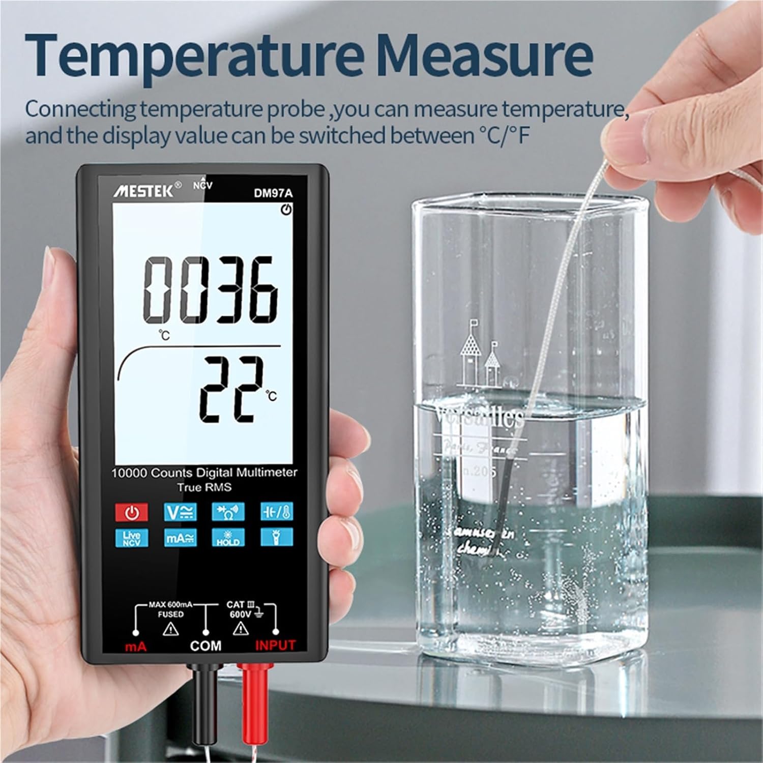 Multi TestersPlace of Origin : Guangdong, ChinaDimensions : 180*120*40mmMeasuring Capacitance Range : 100nF~100mFMeasuring Inductance Range : multimeterMeasuring Resistance Range : 0~100MOperating Temperature : 0~40DC voltage (V) : 0~600VAC voltage (V) : 0~600VMaximum Display : 9999Display : DigitalScreen : Color ScreenNCV : yesTure RMS : yesAmbient Temperature : yesWeight : 310gTemp Probe : -20~1000°C/-4~1832°F