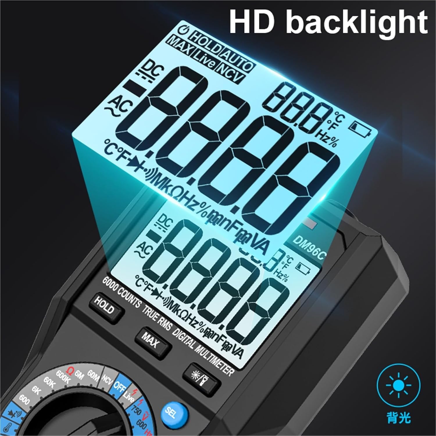 Multi TestersModel Number : DM96CPlace of Origin : Guangdong, ChinaDimensions : 184*88*55mmFeature : otherMax. AC Current : 10AMax. AC Voltage : 750 VMax. DC Current : 10AMax. DC Voltage : 1000 VMeasuring Capacitance Range : 0-60MFMeasuring Inductance Range : multimeter digitalMeasuring Resistance Range : 0-60MOperating Temperature : -20~1000Power Supply : 2*1.5V AAProduct Name : dm96Color : BlackSize : 184*88*55mmsampling time : about 15minutesDC voltage (V) : 0-1000vAC voltage (V) : 0-750vCertificate : ETL
