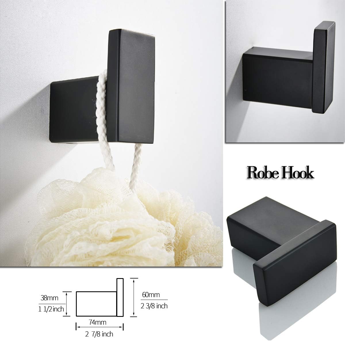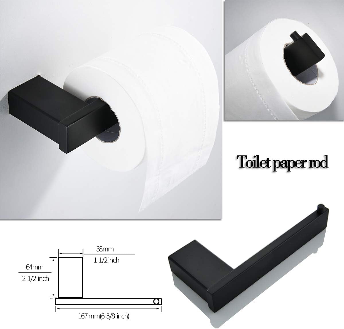 SPECIFICATIONS: Material: SUS304 stainless steel Style: Modern Color: matte black, brushed nickel, gold Installation method: wall-mounted type PACKAGE INCLUDES: 1.Robe Hook 2.Toilet Paper Rod 3.Towel Hanger 4.Towel Bar 5.Mounting Accessories 6.Installation Guide