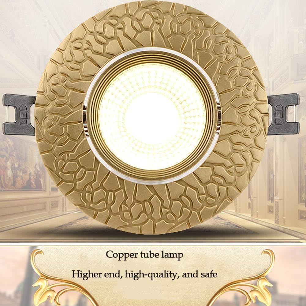 Product Description:Type: Embedded tube light/LED ceiling light/panel lightColor: CopperMaterial: Aluminum+BrassSize information: (refer to size chart)Power: 5W,5W, Surface diameter: 99 millimeters/3.7 inches, height: 54 millimeters/inch, opening size: 70-96 millimeters/2.7in-3.6 inchesColor temperature: 3000K/4000K/6000K switchableSize information: (refer to size chart)Color rendering index: RA90Light source: LED (built-in)Voltage: 110V-120VProcess flow: welding, painting, cleaning, etc.Falling area: 5-10 square metersStyle: Modern, minimalist, fashionableSuitable for: dining room, hallway, living room, bedroom, kitchen, garden.Office: Meeting room, workspace, front desk, exhibition room.Other: restaurants, bars, pubs, cafes, museums, shops, etc.This package includes:Packaging internal light * 1installation accessoriesAttention: Please check the size before purchasing.