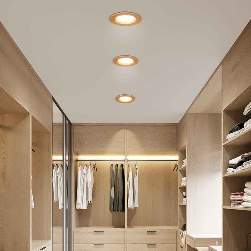 Product Description 1. Compared with fluorescent lamps/halogen lamps/incandescent lamps, it saves 45-70% energy and has a long service life: >90000H. 2. Healthy, no flicker, eye protection, quick activation. 3. Built-in high-power LED driver, imported cob chip, good heat dissipation and small light attenuation. Product Type: Concert/Spotlight Ceiling/Recessed Ceiling Spotlight/Recessed Tilt Fixed color: wood color Material: aluminum Size information: (refer to size chart) Power: 5W, 7W, 5W face diameter: 100mm, opening size: 70-75mm 7W face diameter: 110mm, opening size: 80-90mm Color temperature: 3000K, 6000K optional Color rendering index: Ra≥90 Bulb type: LED Number of light sources: 1 Voltage: 110V Irradiation area: 10㎡15㎡ Specific uses: Suitable for study rooms, corridors, restaurants, storage rooms, bedrooms, living rooms, corridors, exhibition halls, balconies, and hotel rooms. Package includes: Downlight*11 Install accessories notes: 1. Please make sure the power supply is turned off before installation. 2. Please confirm the size before purchasing.