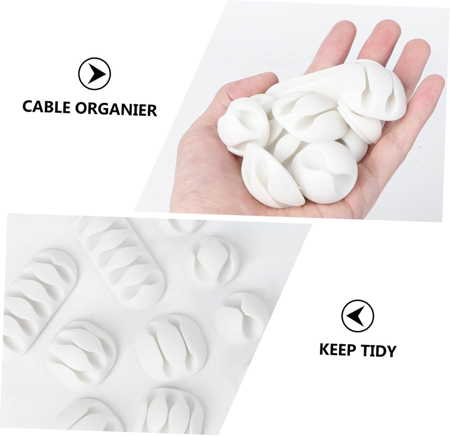Package Include 20 organize clip Characteristics - Color: White cable organier. - Size: About 7x3x1cm cord clip organizer - Material: TPR. - Each set includes 5 style cable organize clip, and 2 Pcs for Each Style.- TPR with maximum endurance and durability. Keep your desk tidy and organized.- With adhesive to stick it to smooth clean surfaces such as underside of tables, walls, filing cabinets, furniture, etc desk cable organizer. - to secure your cables in place and enough to remove your cable easily. cable clip organizer wire clip organizer - Help you to organize your headphones, chargers, USB cables or other accessory items you most need by hand at your desk.Goods Informationcable clip organizer Tired of all those cables and cords around your desk, TV, computer or cell phone? The Cable Clips will solve your problem and will make sure that your cables are organized and easy accessible for you when you need them