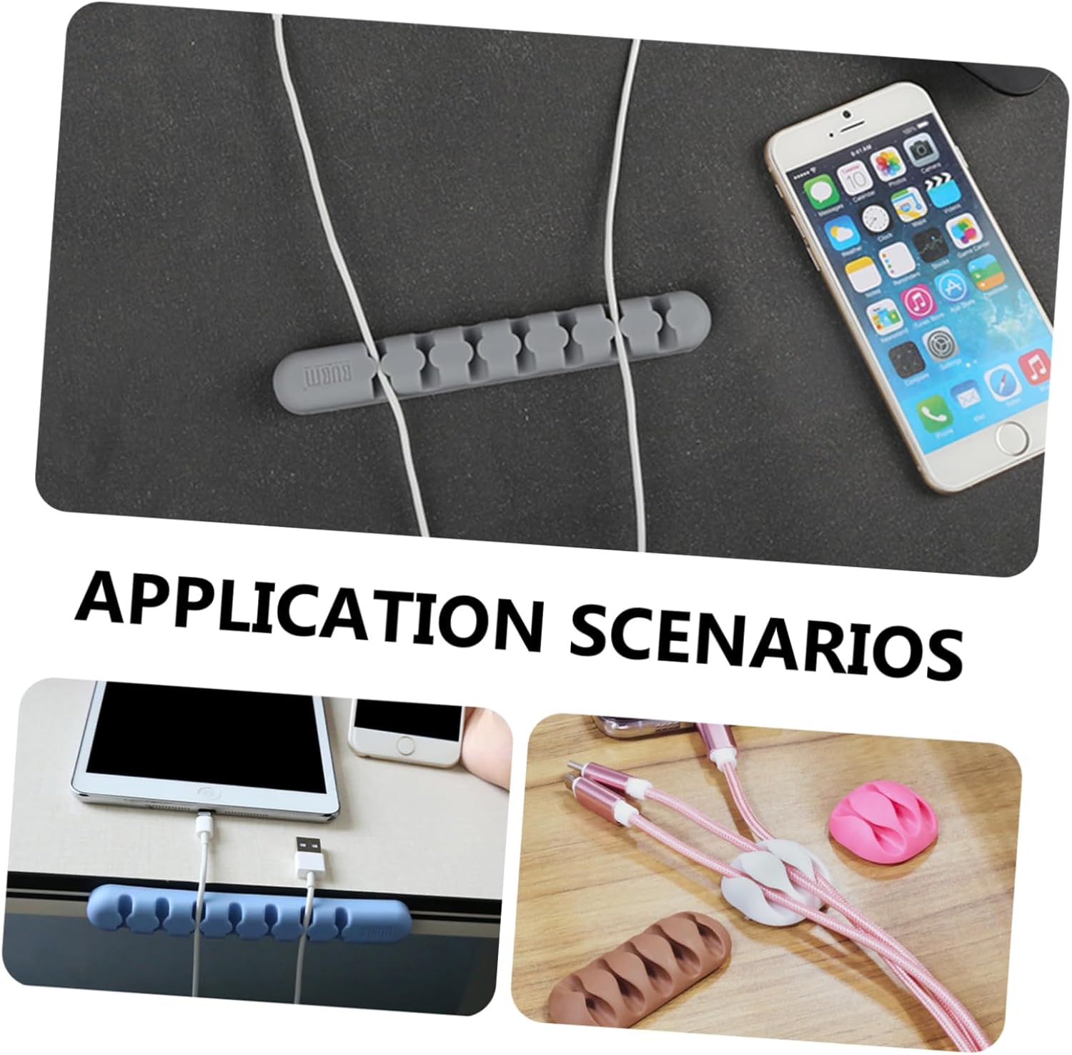 • Cable organier:help you to organize your headphones, chargers, USB cables or other accessory items you most need by hand at your desk,wire clip organizer
