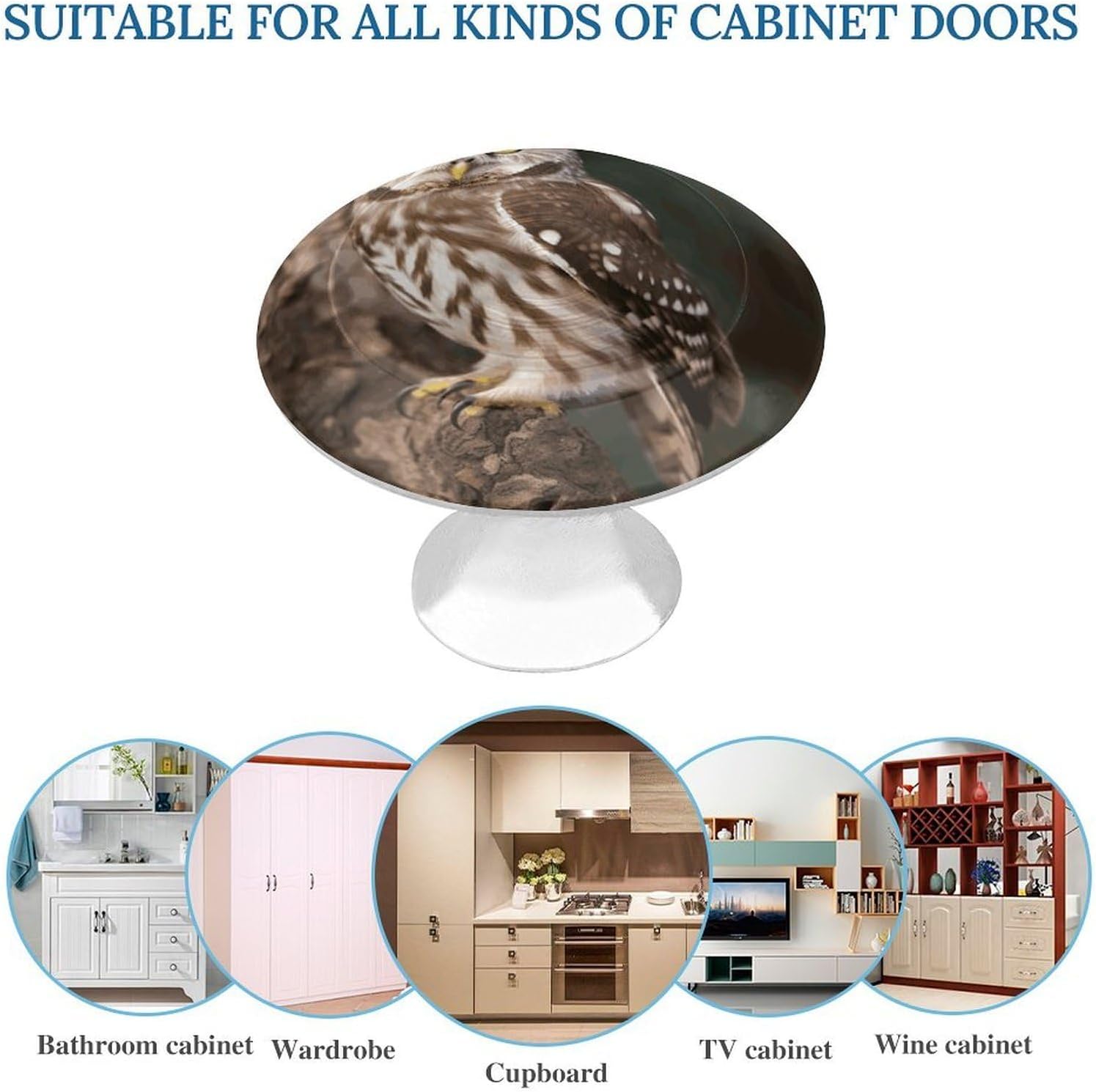 Wildlife Animal Owl Drawer Pulls 1.1 Inch Kitchen Cabinet Knobs Solid Round Dresser Drawer Knobs Matte Dresser Knobs Drawer Knobs Simple Cabinet Hardware for Cupboard Drawer Pulls Perfect Small-Scale Proportion – The 1.1" diameter creates a delicate, refined look ideal for: - Kitchen drawer fronts - DIY furniture projects - Office storage drawers - Jewelry boxes & small furniture - Bathroom cabinet door updates Easy Installation: Light weight,flat touch,very easy to install. Suit your kitchen cabinet, furniture door, cupboard, desk drawer, wardrobe drawers, shoe cabinet, chest, bookcase and more. 24-Hour After-sales Service:If you have any questions about the size or color of our handles,please feel free to contact us at any time. Our dedicated customer service helps you select products that are suitable for your cabinet door.
