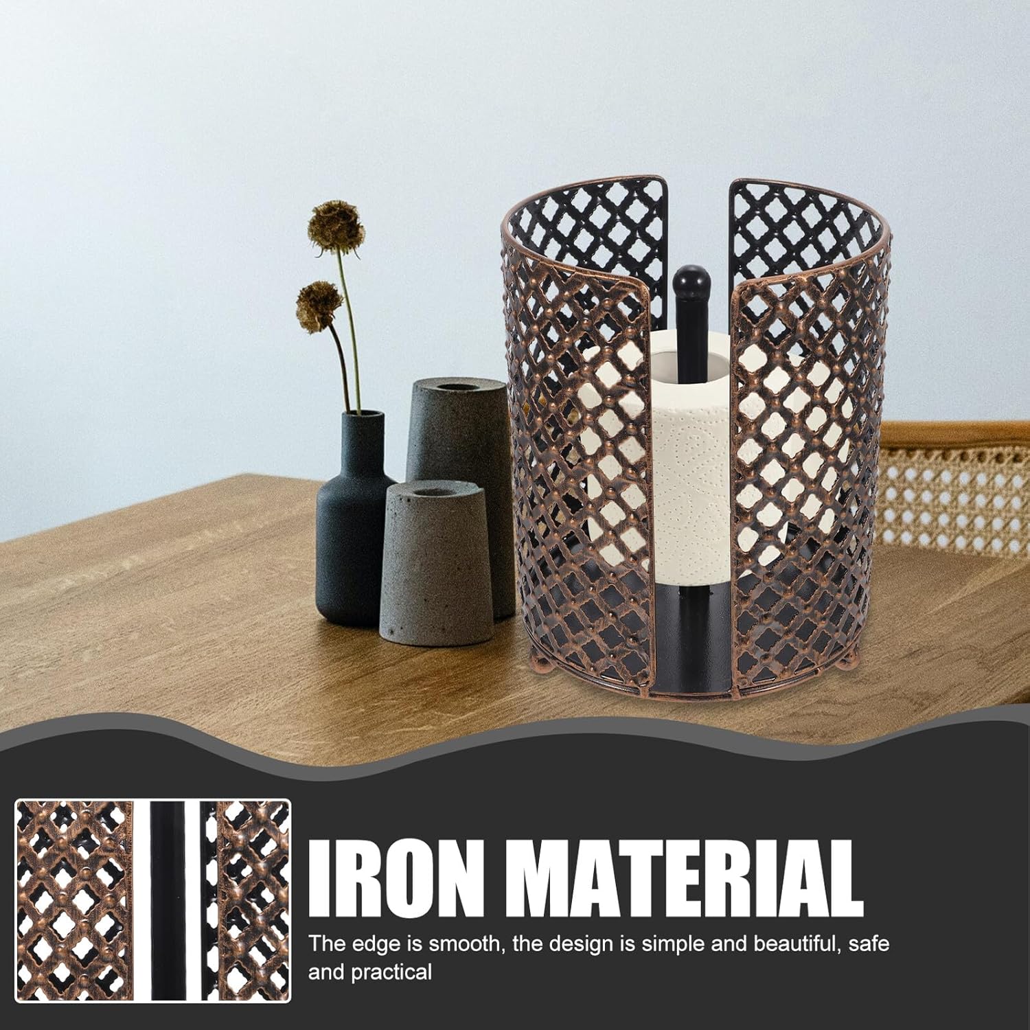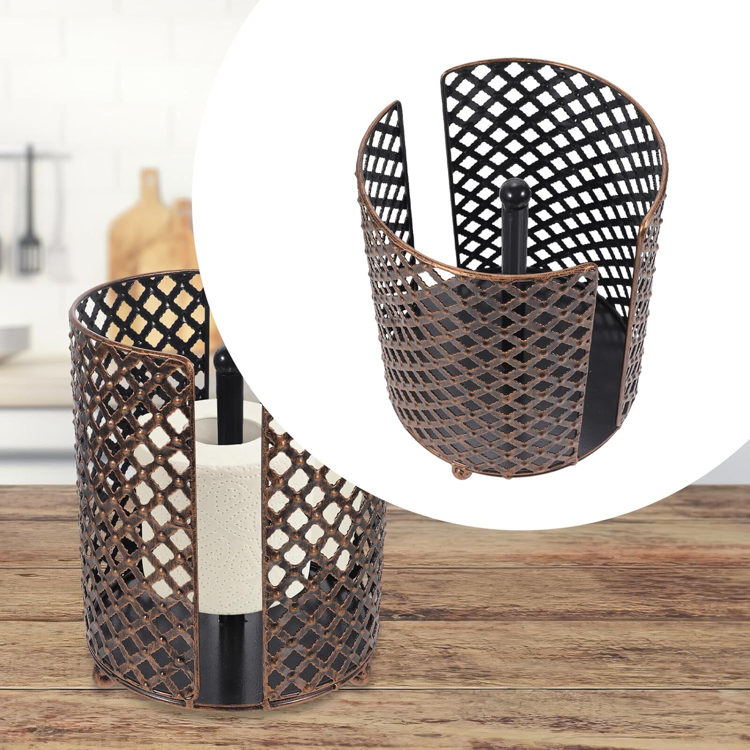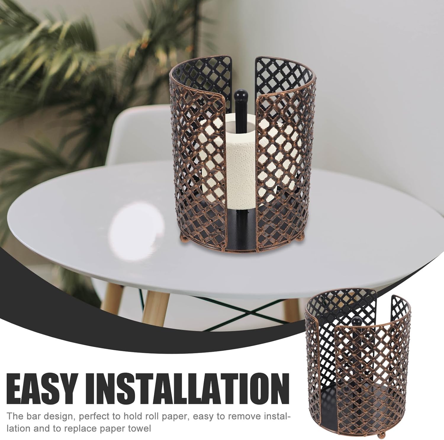 Package Include 1 x Paper Roll Holder Characteristics -Size:22.00X18.00X18.00cm/8.65X7.07X7.07in -Color:Dark Brown -Material:Iron -Product Info:Paper roll holder -Fashion and simple appearance design, it can match well many home decorative styles paper towel holder stand. -Good for bathroom and kitchen using, very simple and practical for . Widely used, suitable for home, living room kitchen room roll paper holder tissue box paper towel holder. -Great workmanship, stylish and simple designed structure, convenient and easy to use kitchen paper holder. -Selected high-grade material, Toilet Paper Holder is strong bearing capacity, . -Simple installation design, simple operation, and also can be used for a long time metal tissue holder.Goods Descriptionpaper towel holder This household multi-purpose roll paper holder is very practical and convenient to use, easy to install.countertop toilet paper holder It can keep your home clean and tidy effectively.iron toilet paper holder Made with , very to use.tissue holder for bathroom Multiple using range, it can be installed in the toilet to hold roll paper and some other items