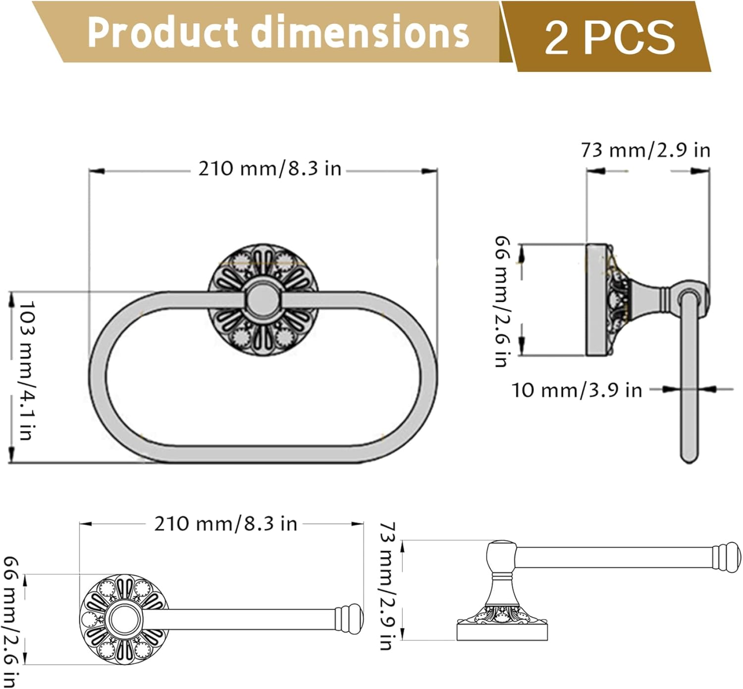 Description: This 2PCS Brass Toilet Paper Holder set combines elegant antique brass craftsmanship with practical functionality, enhancing your bathroom space with its vintage copper gold finish and stable construction. The 8.3-inch holder is perfectly sized to accommodate standard and jumbo rolls, while the included hand towel ring adds versatility and efficient organization. Easy to install with all necessary mounting hardware, this wall-mounted set ensures a stable fixture on your bathroom wall, resistant to rust and corrosion thanks to its high-quality brass material. Designed to blend seamlessly with a range of interior styles from classic vintage to contemporary, these antique brass bathroom accessories elevate your décor while delivering daily convenience. Upgrade your restroom with these stylish and functional toilet paper holders that provide both aesthetic appeal and enduring performance. Features:. -Color: Golden. -Material: Copper. -Size: 21 cm/8.3 inch. Note:Manual measurement, please allow slight errors on size.The colors may exist slight difference due to different screens. Package Including 1 * Towel Ring1 * Paper Towel Holder