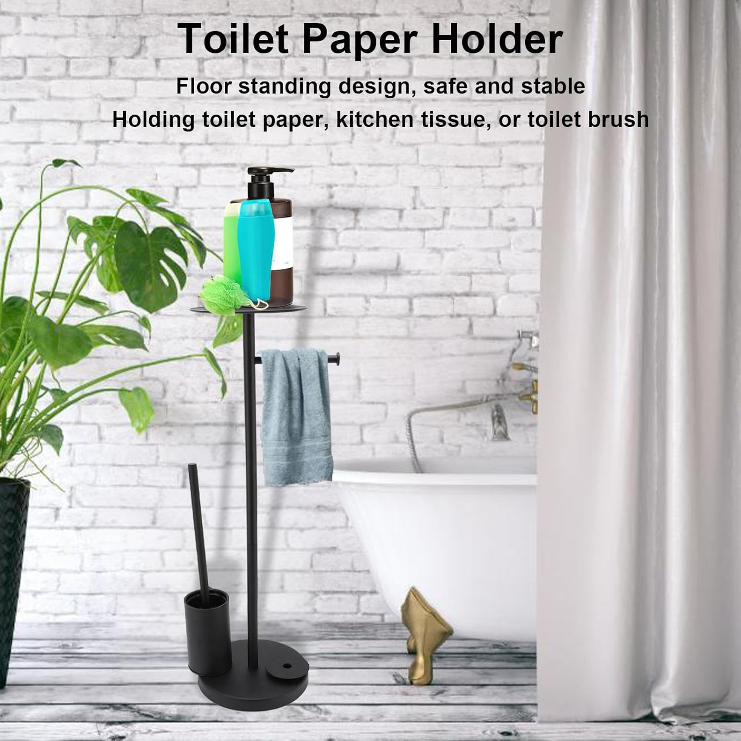 Product Description:This floor-standing tissue holder provides a practical storage solution without the need for drilling or permanent installation. Made from stainless steel, it features a stable base to hold a toilet paper roll and includes a top tray for small items. Its versatile design also accommodates a toilet brush, helping to organize your bathroom, kitchen, or laundry room space.Item Type: Standing Toilet Paper HolderProduct Material: Stainless SteelTop Tray Diameter: Approx. 20cm / 7.9inBase Diameter: Approx. 19.5cm / 7.7inBrush Holder Height: Approx. 14cm / 5.5inWeight: Approx. 2589g / 91.3ozPackage List:1 x Standing Toilet Paper Holder (18 Accessories)