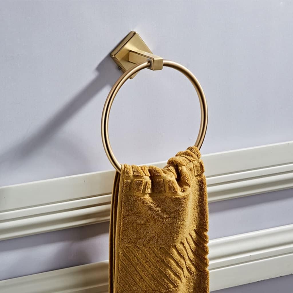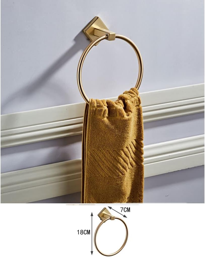 Brushed Gold Full Copper Bathroom Accessories Towel Ring, TRound Hand Towel Holder Wall Mount Towel Hanger>>Main material: copper>shallow technology: electroplating wire drawing>>Package Includes: >1 x Towel Ring>>Note: >1. Light shooting and different displays may cause the color of the item in the picture a little different from the real thing. >2. The measurement allowed error is +/- 1-3cm.{/p}