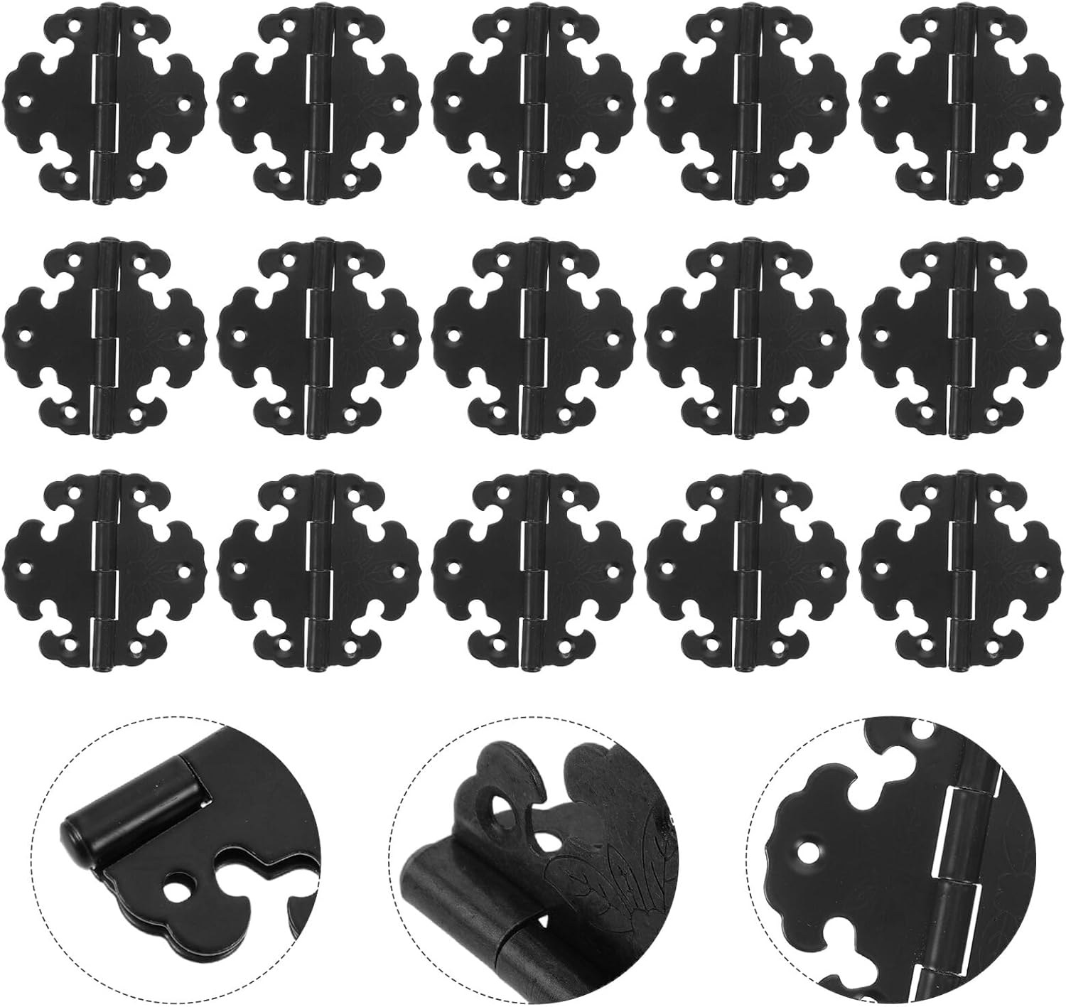 Package Include 20 x antique hinges Features -Charming engraved finish: elevate furniture with black engraving design hinges for a unique vintage black engraved hinges look across cabinets and chests chest hinge -Userfriendly outside mount: the cabinet hinges outside mount style provides easy installation and maintenance for cabinet doors replacement hinges and decoration hinge upgrades decoration hinge -Multipurpose utility: use as hinges for wood cabinet, hinges for jewelry chest box, and chest hinge fittings—perfect for a wide assortment of wooden furniture metal hinges for crafts -Product Info: Antique hinges -Size:6.60X6.30X1.00cm/2.59X2.48X0.39in - Color: Black -Heavyduty iron hinges: built for reliability, these metal hinges for crafts are for heavy cabinet doors and retro metal hinges restoration projects metal hinges -Material:iron -Revive retro atmosphere: infuse spaces with old style cabinet hinges appeal, ideal for creating an cabinet hinges setting in homes or offices chest hingesGoods Descriptionwardrobe furniture hinges for renewals or crafting retro decorative mini hinges.chest hinge Add a decorative statement with these vintage hinge featuring furniture hinge metal construction and black engraving.decorative door hinge The antique black decorative hinges enrich your chests, vintage door hinges, or retro cabinet hinges, combining aesthetic appeal with functional strength