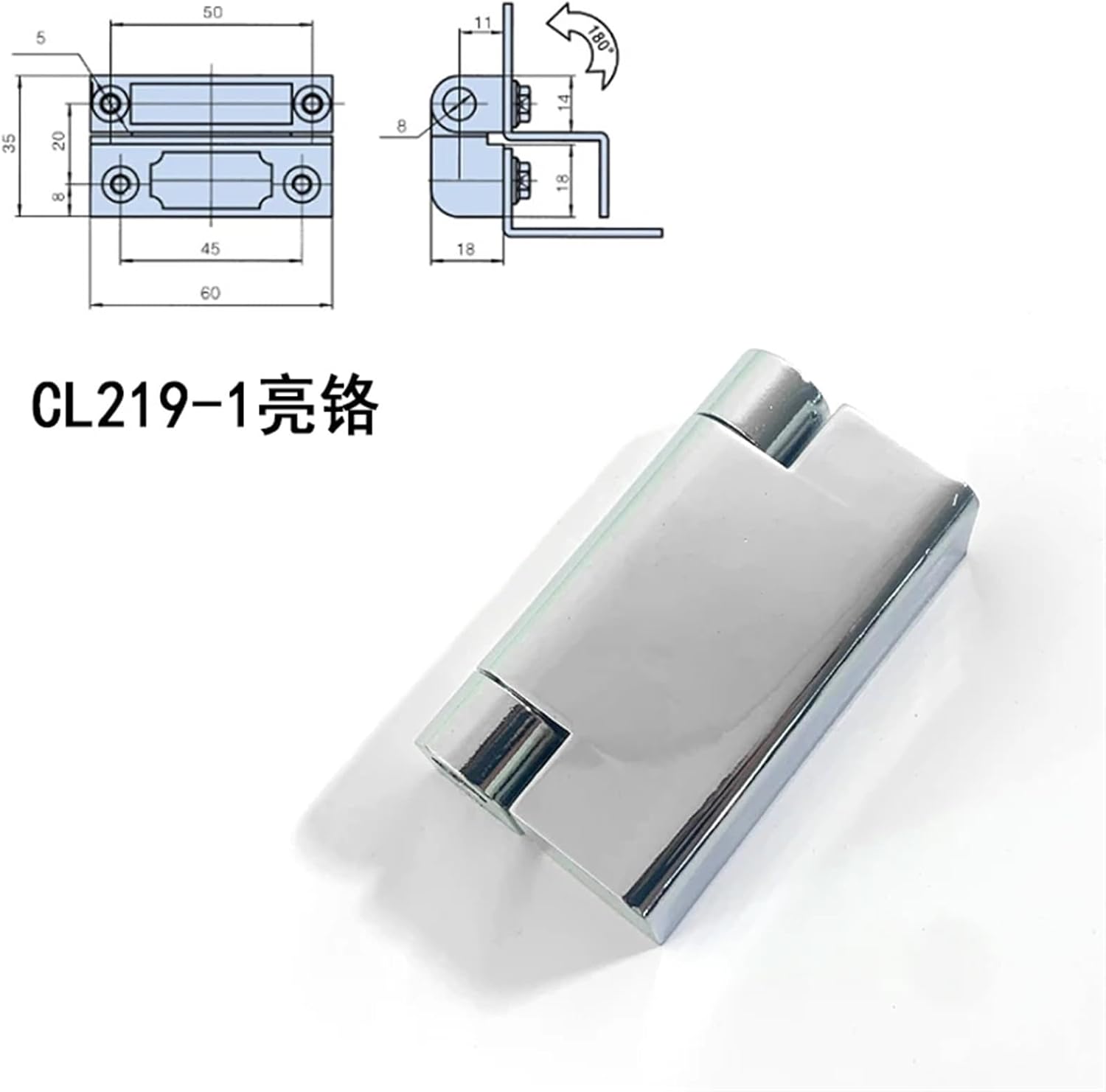 HingesDescription:Product category:HingeMateria: Zinc alloy Size:As drawingPackage Included:Hinge*1Net Weight:136gNotes:As the monitor has different color differences, please refer to the actual product for the color of the product.Product sizes are measured manually, there are certain errors, please refer to the actual product.