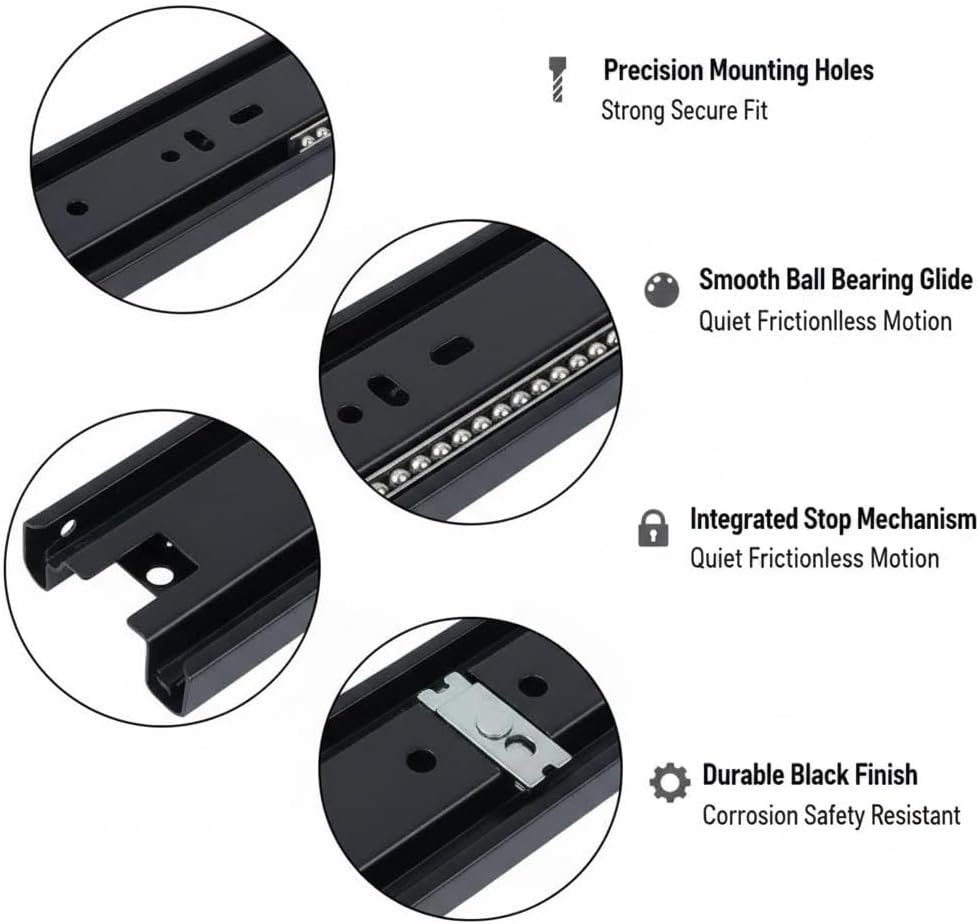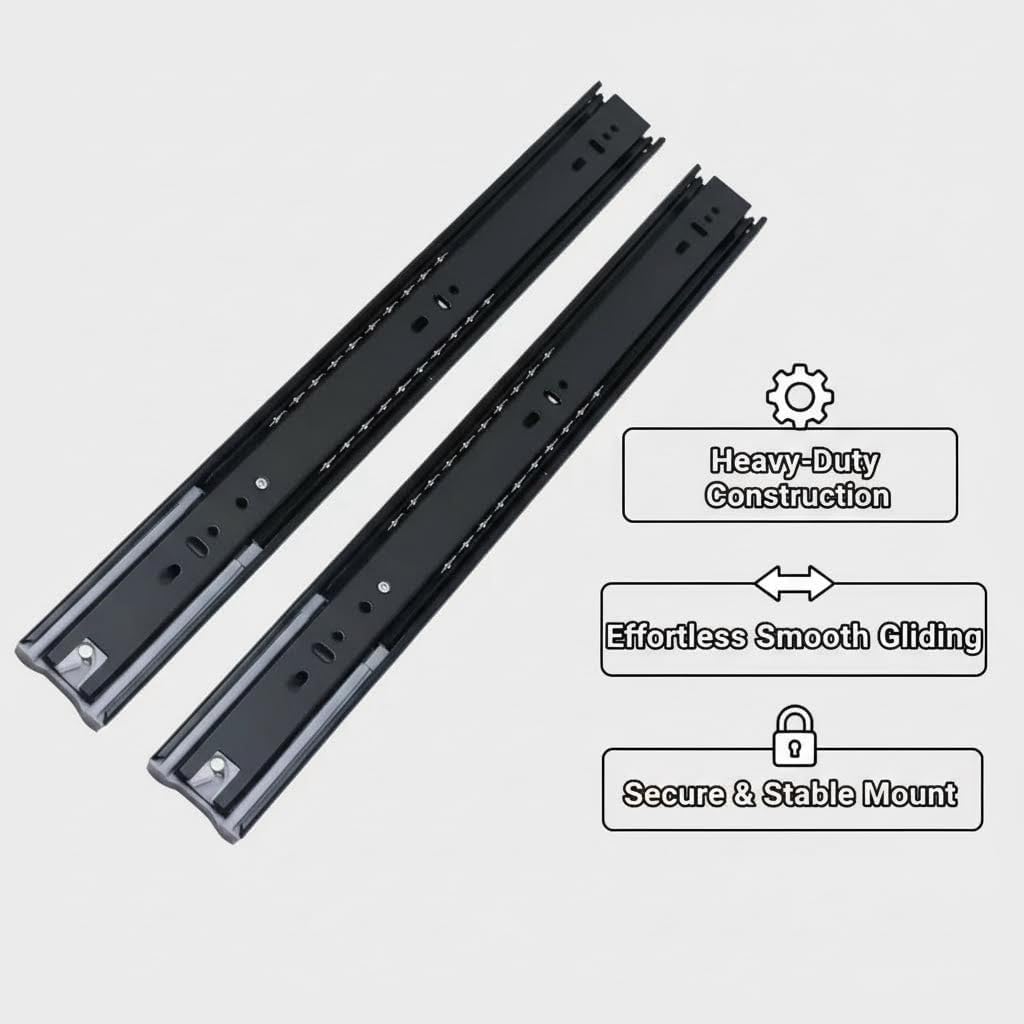 Our heavy-duty drawer slides are designed to provide smooth and reliable performance in your kitchen cabinets or furniture. Made from durable cold-rolled steel with a special finish they resist rust and corrosion to extend their lifespan. Features like quick-release snaps allow for easy installation and replacement helping you upgrade your storage solutions effortlessly. Every drawer slide supports full extension so you can access all your items with ease maximizing your storage efficiency and convenience.The innovative design features a solid steel ball bearing system providing a seamless glide that enhances the overall user experience. Enjoy the perfect balance of durability and performance as you open and close your drawers without any hassle. These drawer slides are perfect for various applications from kitchen cabinets to file drawers ensuring versatility in use. Experience improved functionality and a quieter home environment with our meticulously engineered slides.We understand the importance of a complete installation process. Each pair of drawer slides comes with clear instructions and all necessary installation screws ensuring you have everything you need to get started right away. With our easy-to-follow guidelines you can trust that your installation will be successful allowing you to enjoy optimal drawer operation in no time.Package Includes: 1*Drawer Slide Set 2 Screws