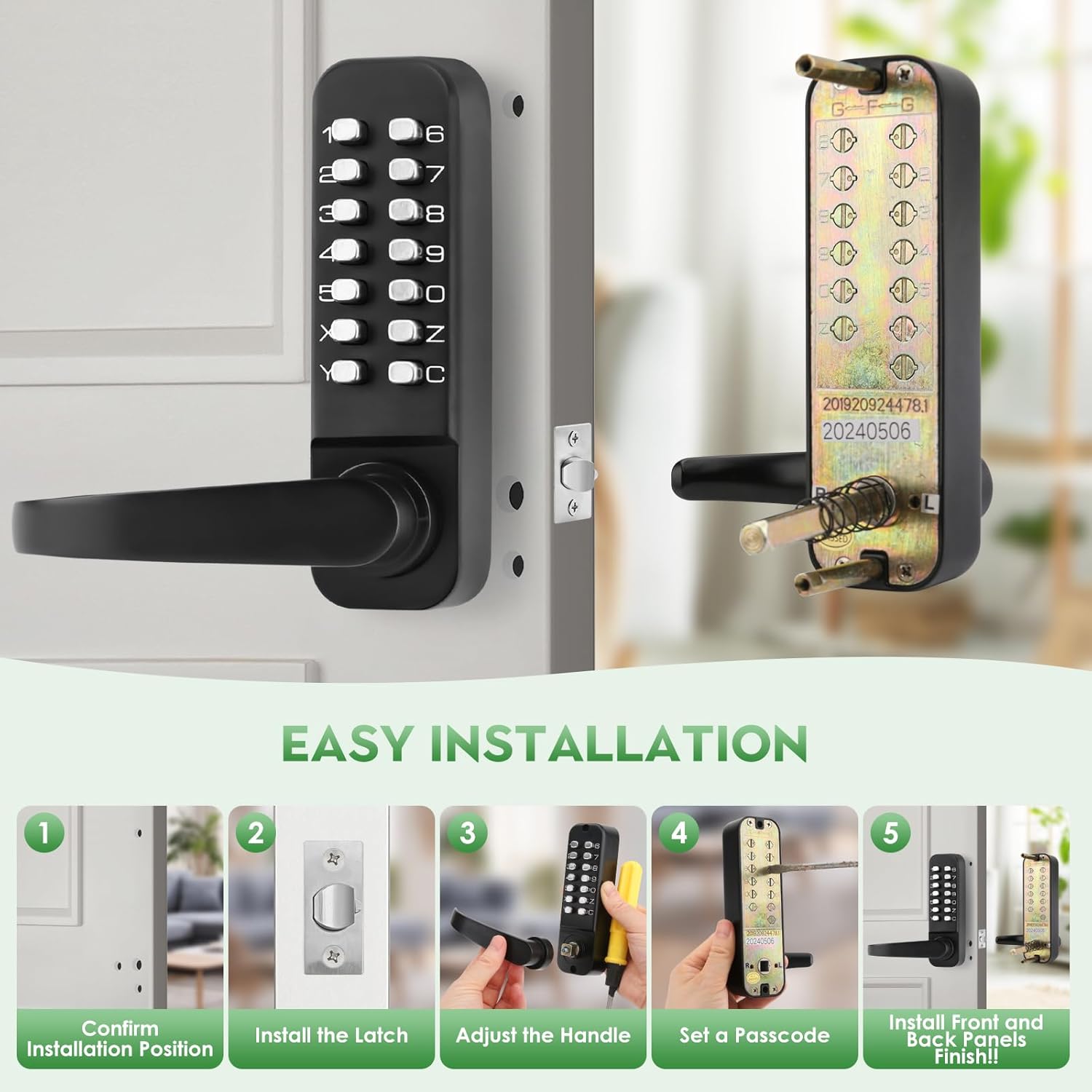 | Included Components | Cover, Exterior Panel with Lever,Interior Panel with Lever,Spindle,60mm Latch,Strike Plate,Strike Box,brass Keys,Rubber Seal,Instruction Manual,Screw pack, Installation Hardware |