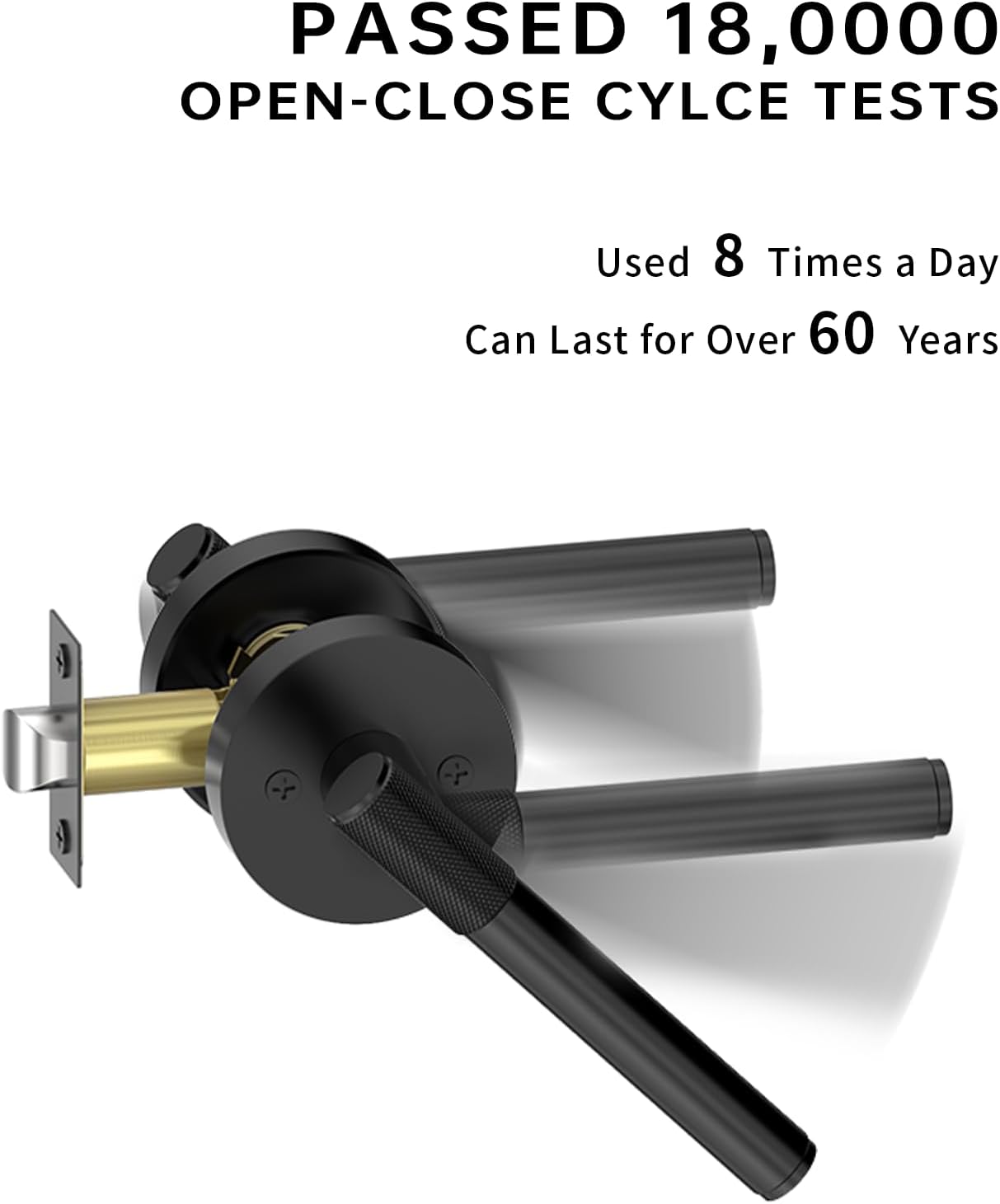 Asidrama 1 Pack Passage Door Handles with Lock, Black Door Handles Interior for Bedroom or Bathroom, Heavy Duty Door Lever with Reversible Interior Door Handle for Left Right Sided Doors