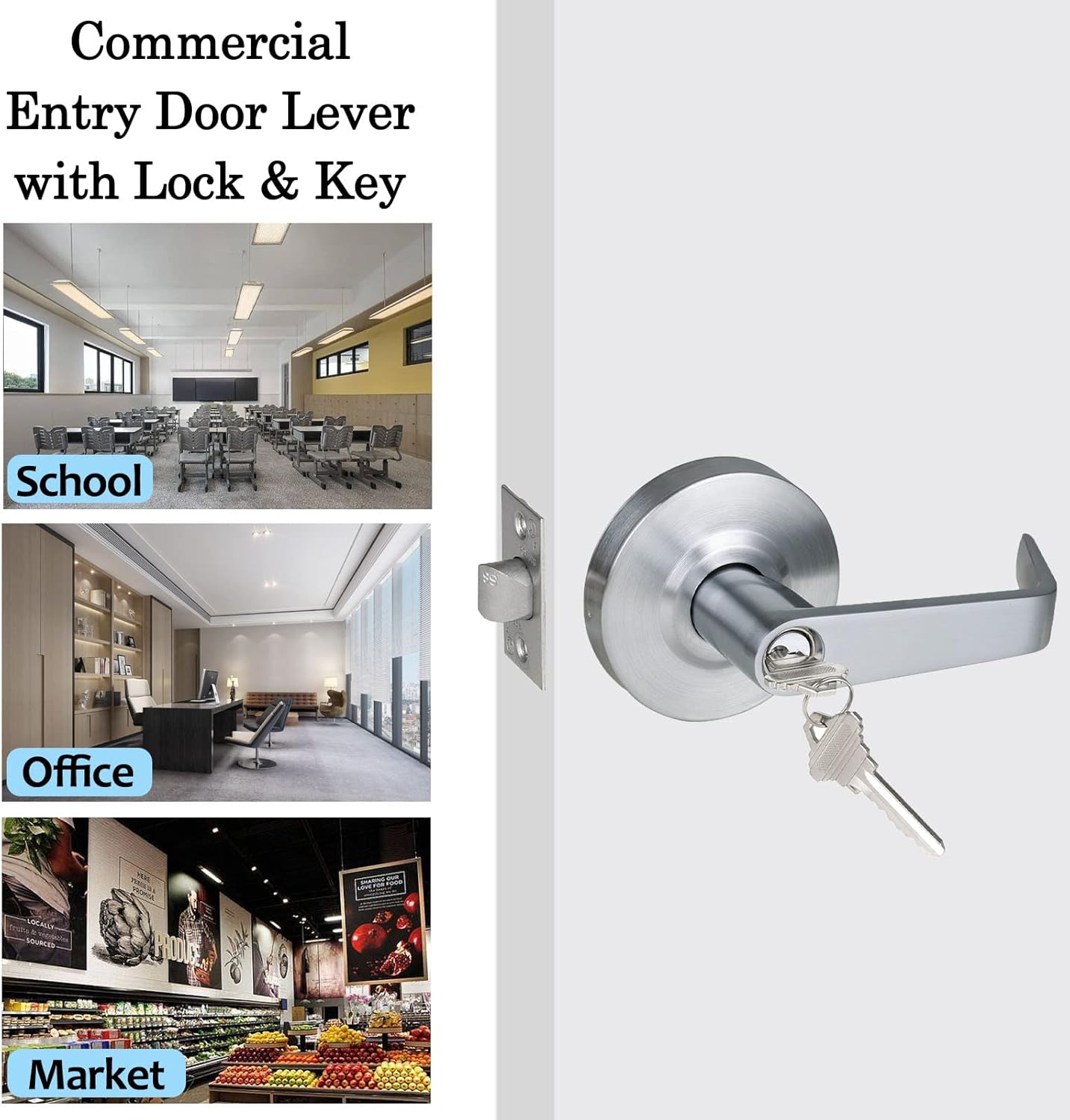 You can buy this conbination and use keyed entry door lever on exterior door (such as front/side/back/gate/main door), while storeroom door lever on storeroom door. Keyed entry door lever can be unlocked by thumb turn button from inside or with keys from outside. Storeroom door lever can be unlocked from outside by key only, and inside is always unlocked for emergency exit. They are from the same brand and are same style.