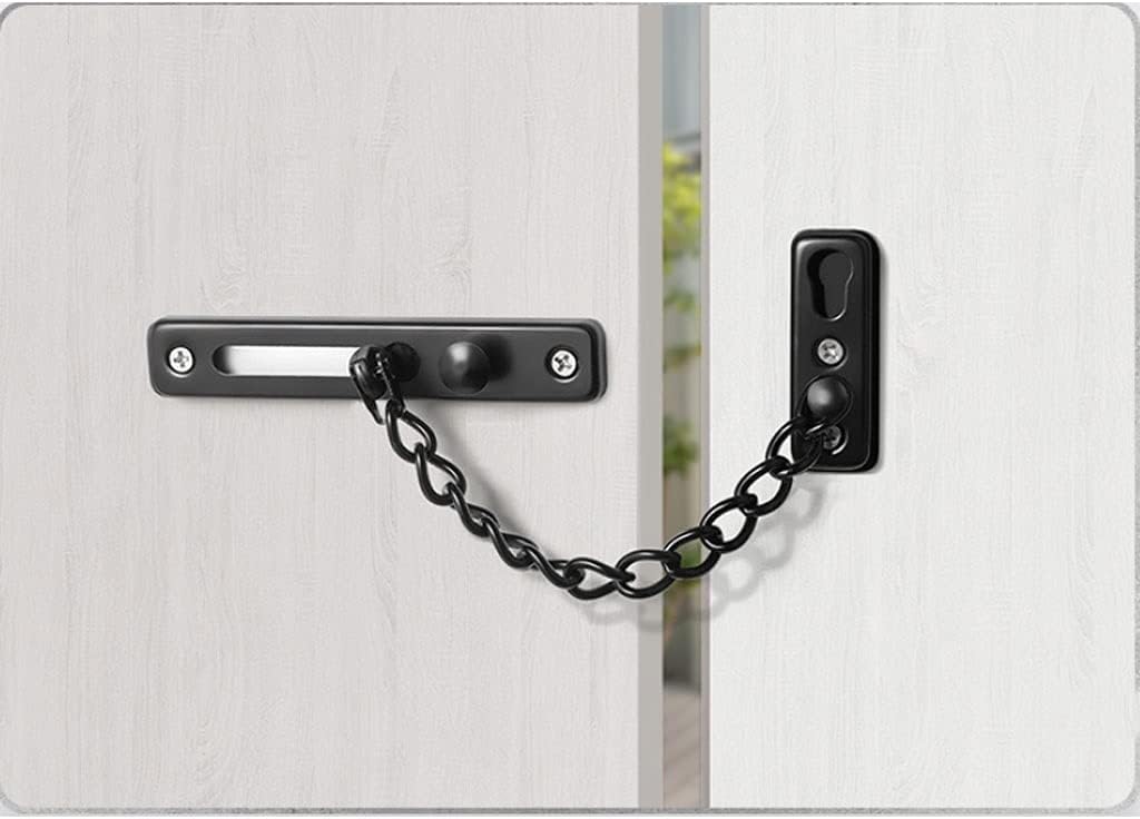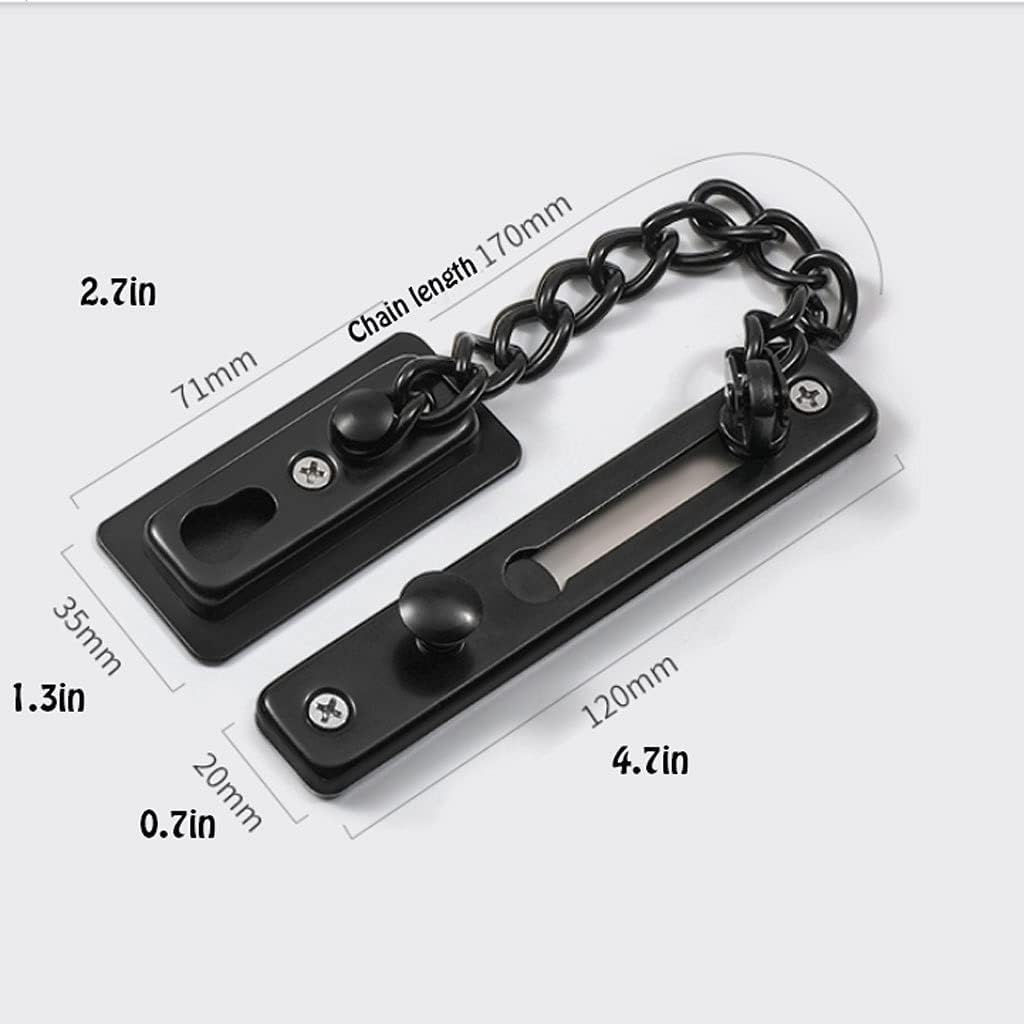 The door handle has good quiet effect and durability, can be used for a long time, and complements a variety of interior styles.Name: Door lock anti-theft chainInstallation method: punching/free punchingWeight: 160gMaterial: 304 stainless steelColor: black/gold/brushed green bronzeScope of application: a variety of wooden doorsSize: 120mmx35mmx71mm/4.7inx1.3inx2.7in