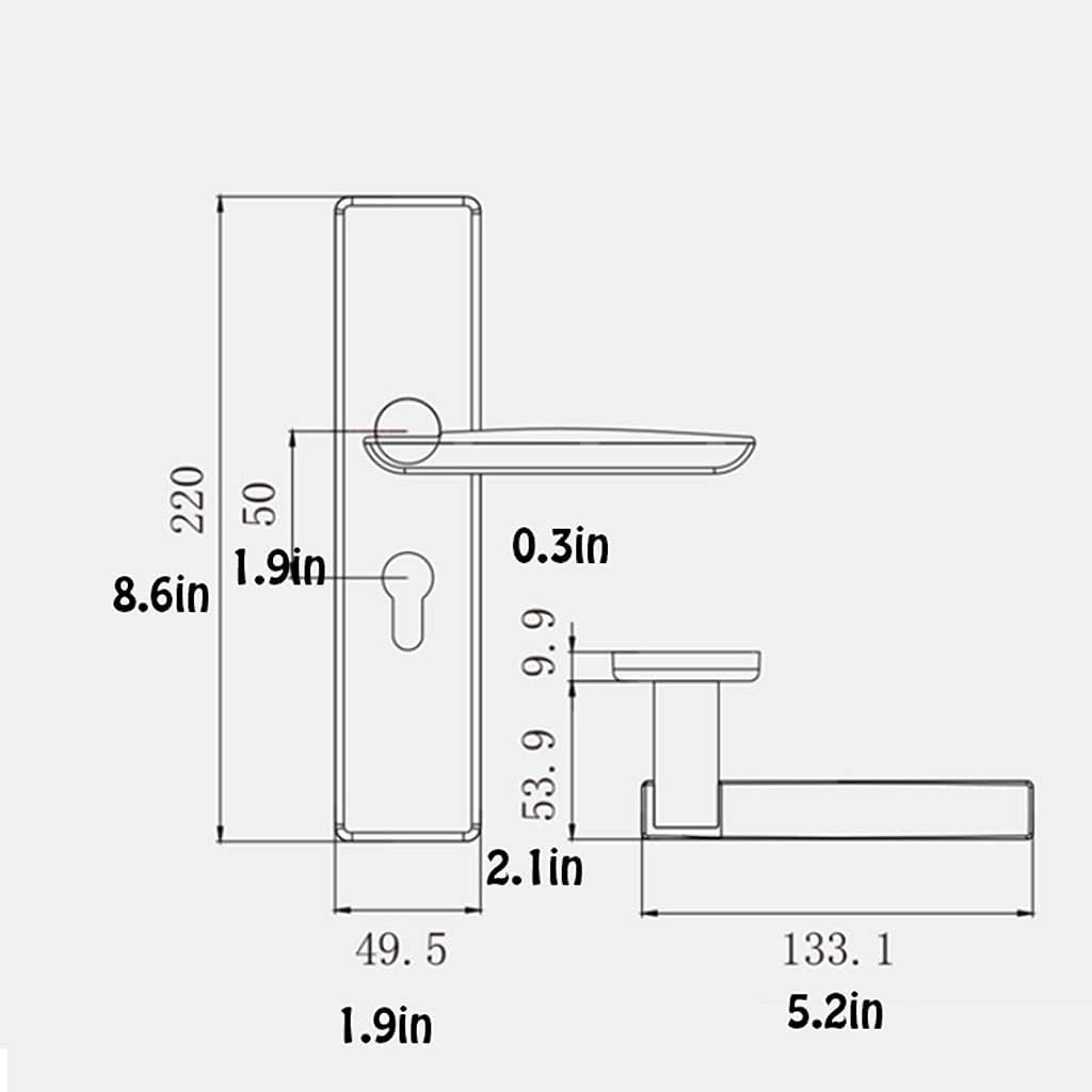 The door handle has good quiet effect and durability, can be used for a long time, and complements a variety of interior styles.Name: door handleInstallation center distance: 55mm/2.1inColor: Yaosha gold, phantom gray, phantom silverKeyhole center distance: 72mm/2.8inSuitable for door] Thickness: 35- 50mm/1.3in-1.9inMaterial: zinc alloyLocking material: all copper lockLock body: V5572N silent lock bodySize: 140mmx72mmx53.5mm/5.5inx2.8inx2.1in230mmx50mmx50mm/9.0inx1.9inx1.9inStyle B: 133.1mmx56mmx56mm/5.2inx2.2inx2.2inStyle A: 133.1mmx220mmx49.5mm/5.2inx8.6inx1.9in