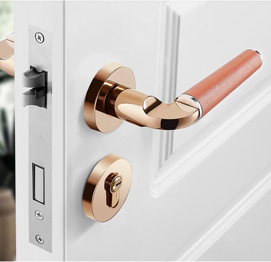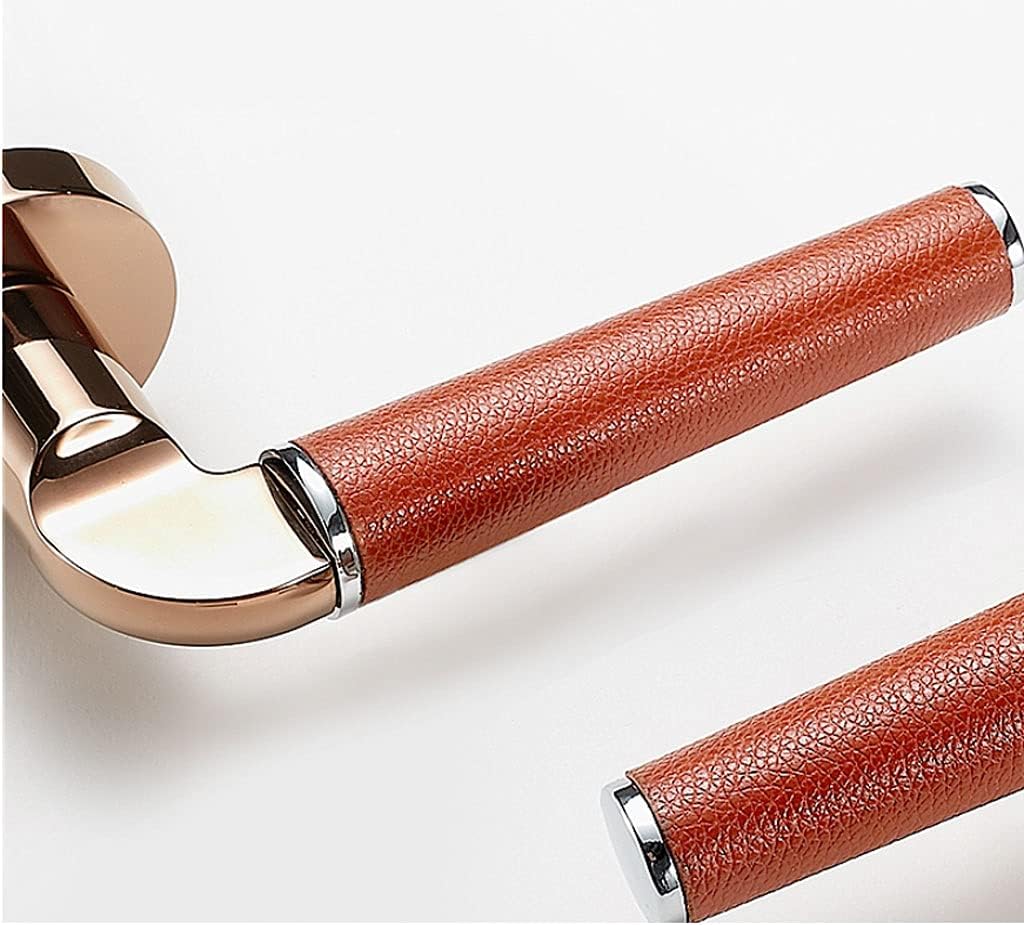 The door handle has good quiet effect and durability, can be used for a long time, and complements a variety of interior styles.Name: door handleSuitable door thickness: 35mm-45mm/1.3in-1.7inMain material: zinc alloy + leatherLocking distance: 48mm/1.8inApplicable; a variety of wooden doors, steel wooden doors, etc.Center distance: 72mm /2.8inColor: brown/black/wood grainSize: 136.5mmx52mmx52mm/5.3inx2.0inx2.0in