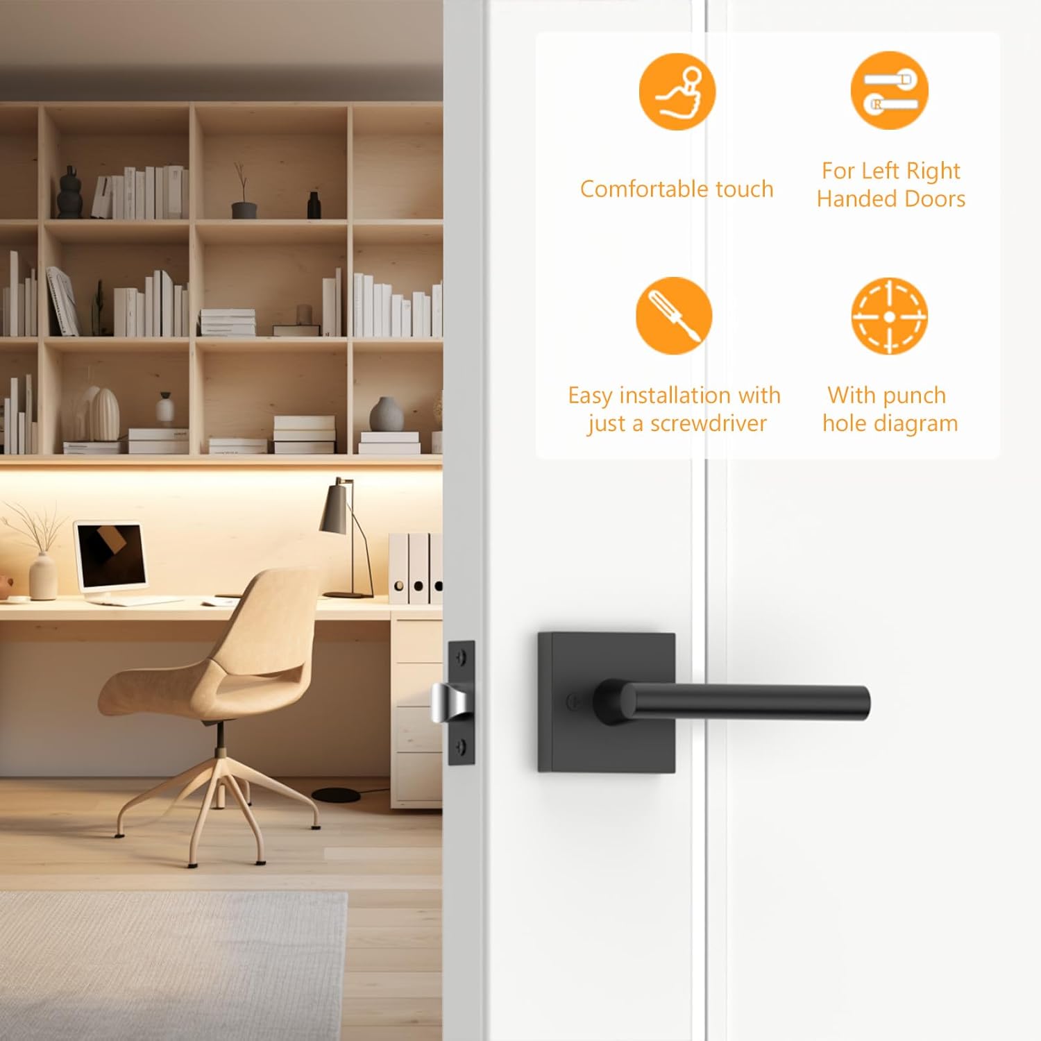 Amerdeco 6 Pack Matte Black Passage Door Handles,Heavy Duty Non-Locking Door Lever for Hall, Closet,Office Area, Shopping Malls AM0031