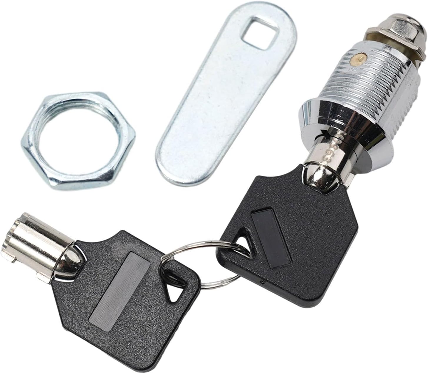 Product description Feature:* and * Metal Alloy Cylinder Cabinet Locker Cam Lock with 2 Keys*Allows you to easily lock any kind of filing cabinet, locker, drawers, tool cabinets, drawers, mail boxes .*For use on wood, metal & glass doors*Ideal for desk drawers, glass doors & lockers*Securely locks all your personal possessions away.*It also comes with 2 keys for the cam lock so you will always have a spare in case 1 goes missing!*Keys are removable in Locked & Unlocked Position!*Keyed to differ for securityDetails:*Material:metal*Color:sliver+black*Size: (as shown in the picture)*Finish: Bright Chrome, Bright Nickel.*- Lock and two Lock keys.*Lock Size(Length) : 16mm,20mm,25mm,30mm (Optional)*Recommended Hole Diameter: 18mm.*Style: Single opening typePackage Contents:1x Mailbox lock1x Closing lever1x Fixing nut2x Keys Manufacturer Contact Information no