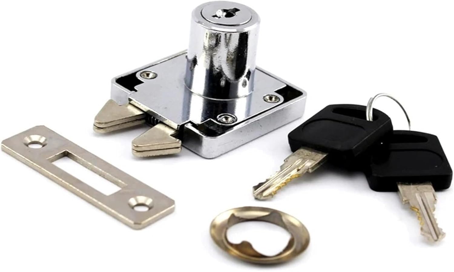 LatchItem:JA43 Lock Type:Cabinet LockKey Type:NoneMaterial:Zinc AlloyFinished:ChromeKey Combination:None Gross Weight:120g/pcsPackage:PP BagAccessories:Lock*1pcs