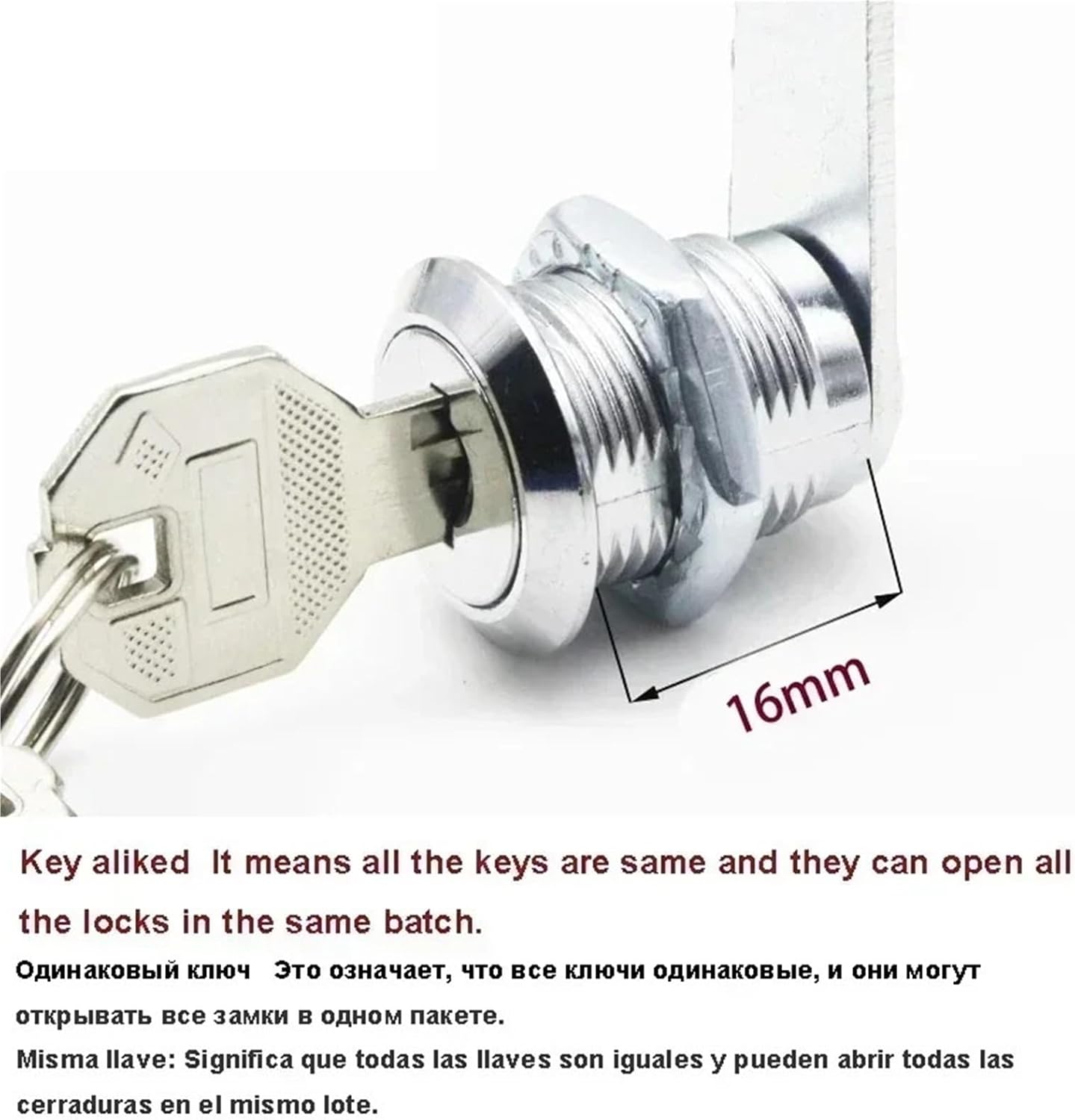Locks Name: Metal Key Cam Lock for Door, Mailbox, Cabinet, Toolbox, Gym Locker, Furniture, Drawers, Hardware HJ01a Item: HJ01 Lock type: Cam lock for cabinet Key Type: Flat Key Material: Zinc Alloy Each set includes: 1 padlock and 2 keys. Material: Steel. Finish: Nickel ========== Size: as the picture shows Model Number: HJ01 Lock Type: Box Lock