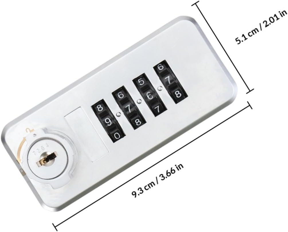 Package List 1 x door lock Features - Size: About 9.30X5.10X3.60cm/3.65X2.00X1.41inch. -Product Info:Digital password lock - Color: Silver. - Material: Plastic and zinc alloy. - This combination lock is suitable for steel and wooden cabinets of different thicknesses combination lock for cabinet. - Suitable for use in homes, gyms, swimming pools, schools and other places cylinder lock for storage unit. - Made of metal materials and craftsmanship, it is durable, rust-proof and has a strong anti-theft effect. - This combination lock has , texture, and a . - The installation is simple, with an additional key to unlock, making US more convenient to use cylinder cabinet cam lock.Goods Descriptioncam locks for cabinets This combination lock made of zinc alloy and plastic is our new product.safety locks for cabinets The password is designed with a four-digit wheel dial type, which is very safe and durable.drawer locks Suitable for household use or manual use, etc