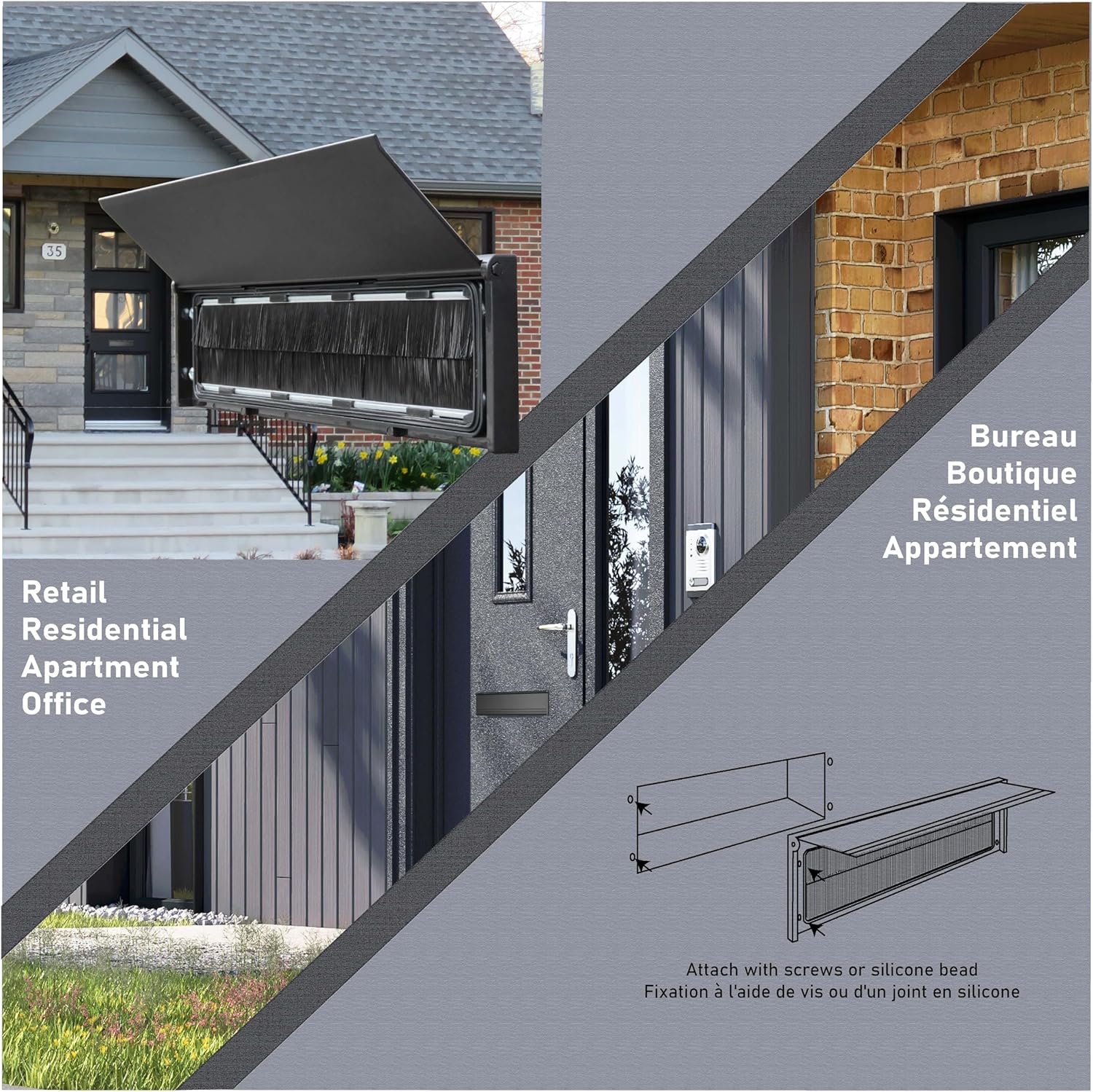 Can be installed on wood, metal and glass doors. Because there is no sleeve, the Surface is directly installed on the surface with silicone or the provided 4 screws. This model is great for urban centers where you want the security for your small parcels and mail entering your building. It has also been installed on the interior of building when there is an existing leaky exterior mail slot that is not going to be replaced.