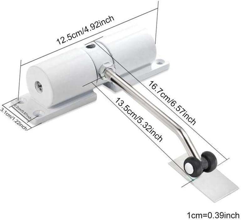Product Specification:Product Name:Auto Door CloserMaterials:304 stainless steelSize:As pictureColor:White, blackMaximum door open angle:175 degreesSuitable for:door weight:20-40kg/44-88lbdoor width ≤1000mm.Package include:1pc x auto door closer4pcs x screws1pc x installation instruction