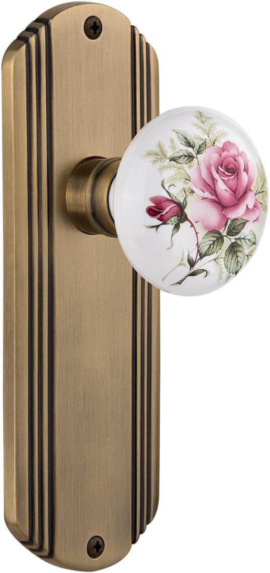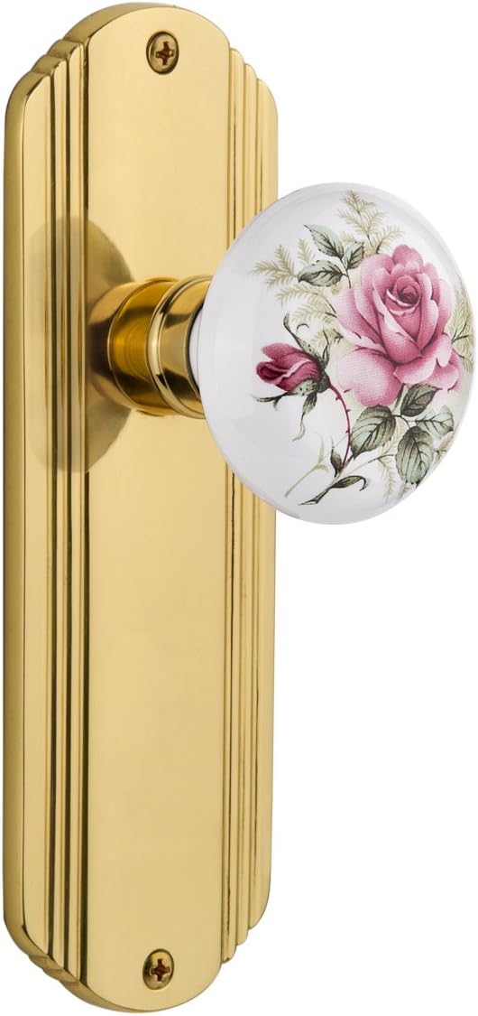 The Deco plate brings to mind old Hollywood, jazz, and the great Gatsby, all of which inspire a modern twist on great classics from the past. And, nothing says “Vintage” like the traditional floral illustration of the white rose porcelain door knob. All Nostalgic Warehouse door knobs are mounted on a solid (not plated) forged brass base for durability and beauty.