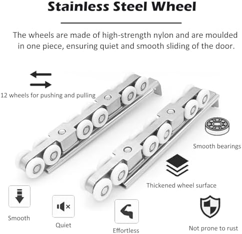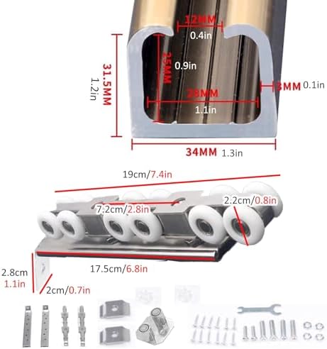 Transform your space with our **Door Track System**, designed for ultimate functionality and style. Say goodbye to noisy, sticking, and wobbly door tracks! Our system ensures an **ultra-smooth and silent operation**, allowing your doors to glide seamlessly. This versatile track is perfect for a variety of applications, whether you're updating your sliding barn doors, closet doors, or room dividers. Worried about compatibility? Our track accommodates **most standard and heavy doors** with a thickness of 30-50mm (1.2in - 2in), making it an ideal choice for your home improvement projects. Installation is a breeze—everything you need is included, and you can set it up in just **minutes** without any professional assistance. Crafted from **heavy-duty steel with a rust-resistant coating**, our door track supports a remarkable weight capacity of **up to 60kg (132 lbs)**, ensuring durability and reliability even with daily use. Experience peace of mind knowing your door system is built to last, enhancing your living space for years to come. Specifications: - Color: Silver-white - Material: Aluminum track and nylon wheels - Track Thickness: 2mm (0.08in) - Suitable Door Panel Thickness: 30-50mm (1.2in - 2in) - Load Capacity: 60kg (132lbs) - Length: Customizable/Cuttable - Mounting: Ceiling/Wall mount with all accessories included - Fits: Single doors, double doors, pocket doors, barn doors, solid doors Features: - Exceptional load capacity of 60kg (132lbs) - Smooth and quiet pulley operation - Comprehensive mounting hardware included (door not included) Package Includes: - Wrench - Screw kit - Door bumpers - Aluminum double door track - Side mounting accessories (L-brackets) - 4 x 8-wheel hangers with mounting plate Please note: Minor measurement discrepancies may occur due to different batches. Color variations may also exist, so please refer to the actual product for accurate colors. Upgrade your home's functionality and aesthetics with our reliable door track so...