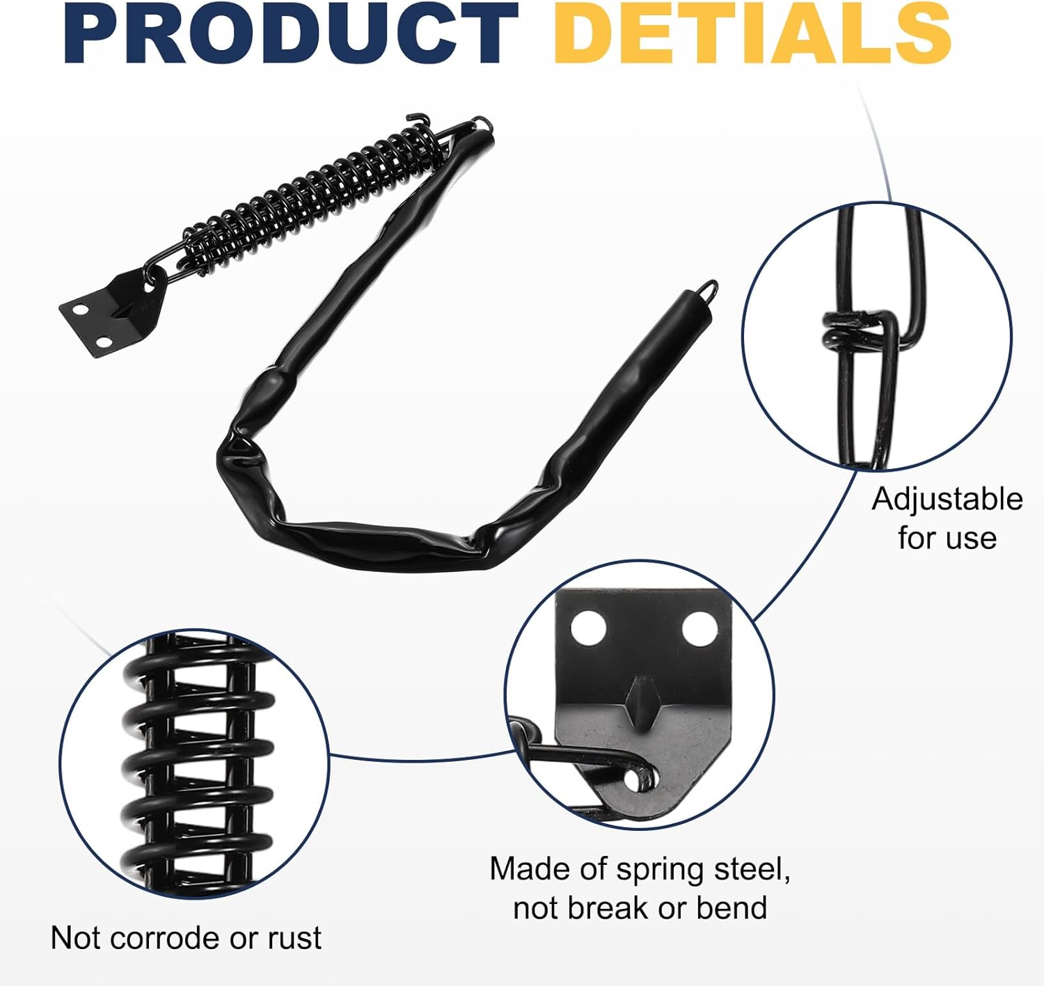 Reasons for selection - This chain is made of spring steel, galvanized for rust and corrosion resistance, and is durable. It is not easily bent or deformed and can withstand strong winds and harsh weather. Its balanced tension ensures a firm restraint without affecting the smooth opening of the door.Measurement - Total length: 640 mm / 25.2 inch; Chain length: 460 mm / 18.11 inch; Wire diameter: 2 mm/0.08 inch;Packing List: 1 Pcs x corner bracket, 1 Pcs x S-hookSuitable for - The storm door chain has a universal design and is fit for a wide range of doors or windows, including hinged doors, wooden doors, aluminum doors, composite doors, outdoor doors, garage doors, and sheds. Once installed, it can protect your property and ease your worries.Installation - First, measure the length at the fixed position, drill holes using a tool, and finally connect the three fixing screws.Kind tips - Ensure proper installation to maximize its protective benefits and protect your property.