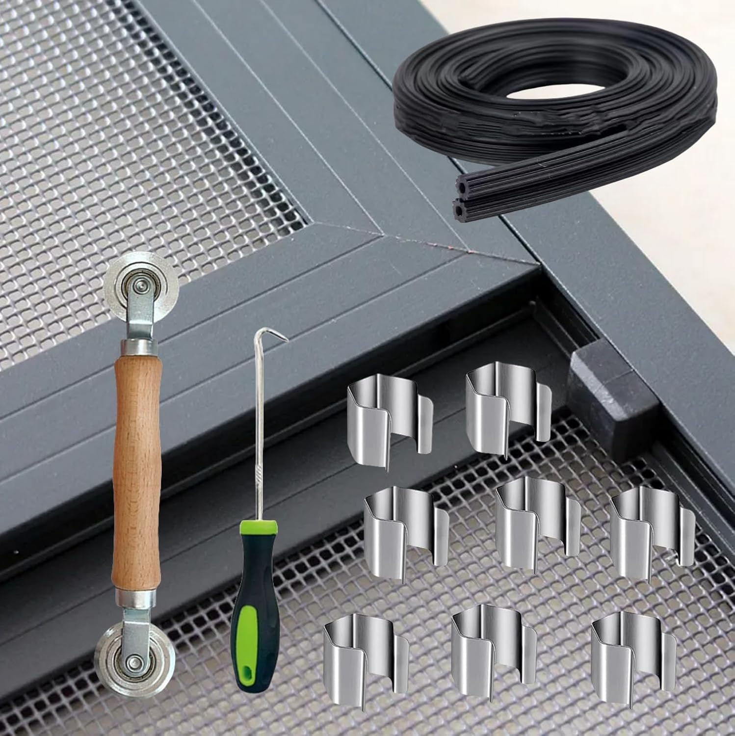 4-IN-1 SCREEN REPAIR KITPackage Includes:1 x 32ft Retainer Spline8 x Screen Installer Clips1 x Screen Roller Tool 1 x Spline Removal Hook