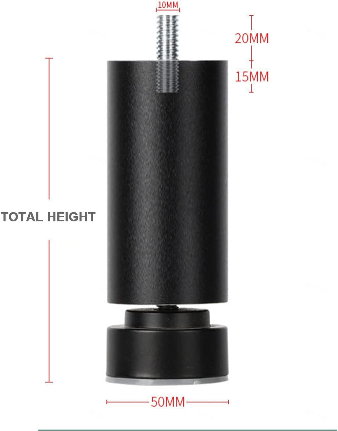 The furniture legs are made of thickened aluminium alloy, with strong load-bearing capacity, not easy to deform, safe, 10 grade anti-oxidation, not easy to oxidize, rust, fade, lose paint, and will not break in long-term use.Anti-slip base for increased friction with the floor, no noise and scratches even when you are moving the furniture.Internal reinforced design increases its resistance to pressure; thickened screw, making it close to the furniture, more solid and durable installation.Product parameters. Product name: Furniture legs Material: thickened aluminium alloy Colour: Black Load: 300kg Package: 4 x furniture legs Application: kitchen, sofa, TV cabinet, table, coffee table, cupboardProduct advantages.Thickened aluminium alloy, strong load-bearing capacity, not easy to deformation, safe.10 grade oxidation resistance, not easy to oxidation, rust, fading.Smooth surface,not easy to leave fingerprints.Adjustable height by yourself, adjustable height can refer to the picture shown or ask us.Cautions.Please choose the correct height for your needs.The products are all measured by hand and may have deviations, please refer to the actual product.If at any time you have any questions or concerns about our products, please contact us via email and we will make every effort to provide you with the best solution within 24 hours.