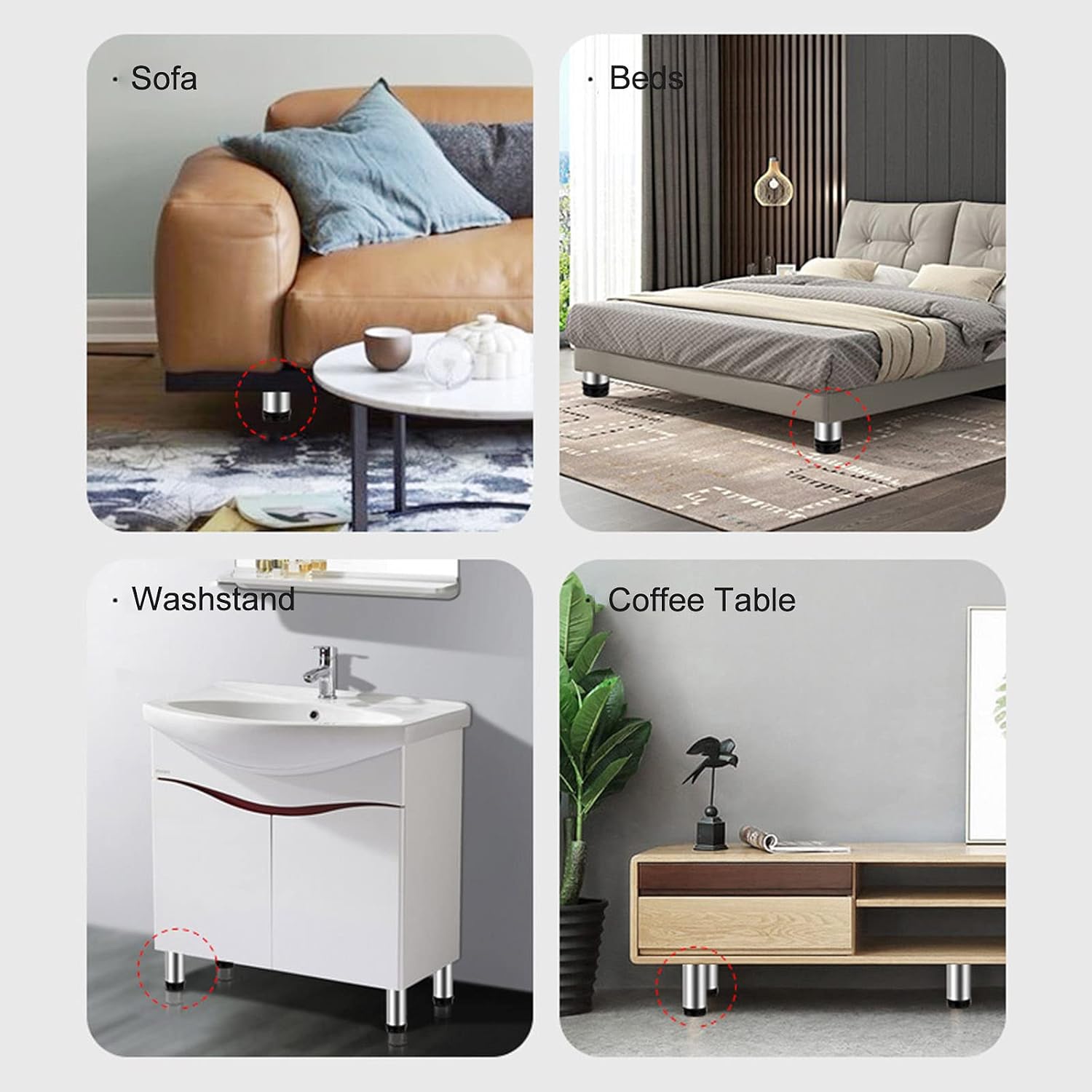 Height adjustable furniture legs, adaptable to uneven floors, multiple sizes available, perfect addition to low furniture, you can choose the right height furniture legs and adjust the height of the furniture legs according to your needs, for a comfortable home experience.Stainless steel furniture legs, waterproof and moisture resistant, beautiful and stylish, strong and durable, easy to install, can be used in homes, offices, kitchens, bathrooms, living rooms and other places, adding style to your furniture, it is a good choice for DIY enthusiasts.Product parameters. Name: Furniture legs Material: stainless steel Size: 5cm,6cm,8cm,10cm,12cm,15cm,18cmn,20cm,25cm,30cm,35cm,40cm Products include Furniture feet×4 Screws x 16Product advantages. Stainless steel, waterproof, rust-proof, sturdy and not easily deformed. ABS rubber base, non-slip, wear-resistant, silent and does not hurt the floor. Height adjustable design, you can choose your own furniture height. Beautiful and practical, widely used in most homes and offices. Complete range of accessories, easy to install, perfect for DIY enthusiasts.After-sales service. We are committed to providing you with quality products, if you find any quality problems with the product after you receive it, you can contact us at any time and we will refund you 100% or replace it with a new one.