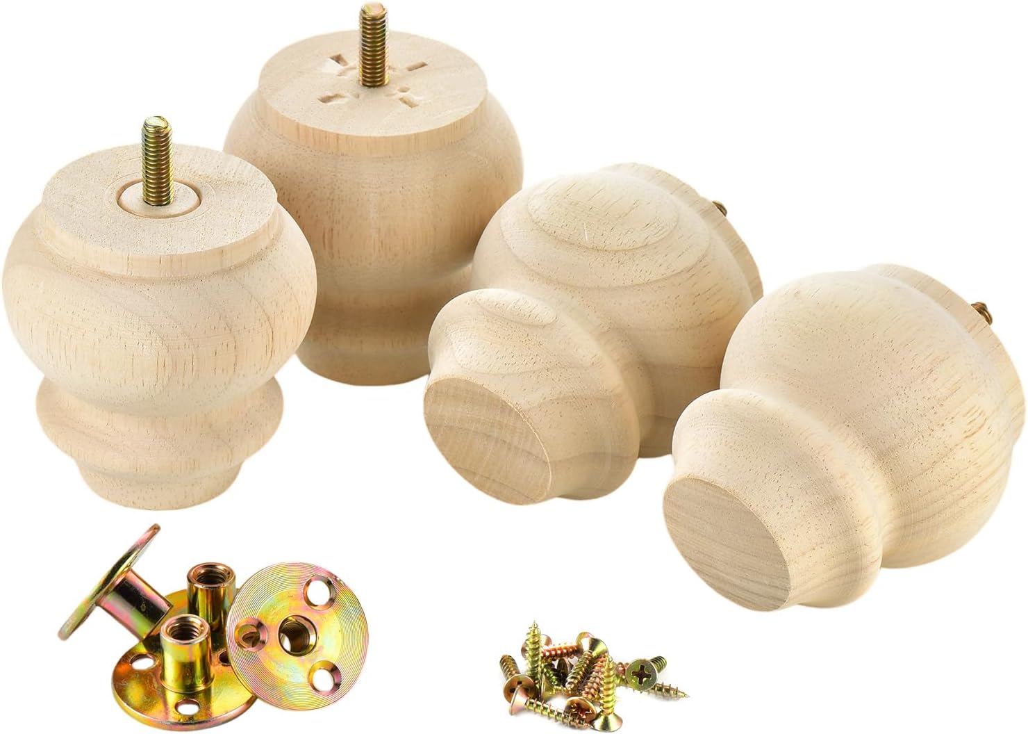 Mysummer Set of 4 Unfinished Solid Hardwood Furniture Legs 3inches with M8 Bolt Predrilled for Furniture Ottoman Couch Cabinet Sofa Legs