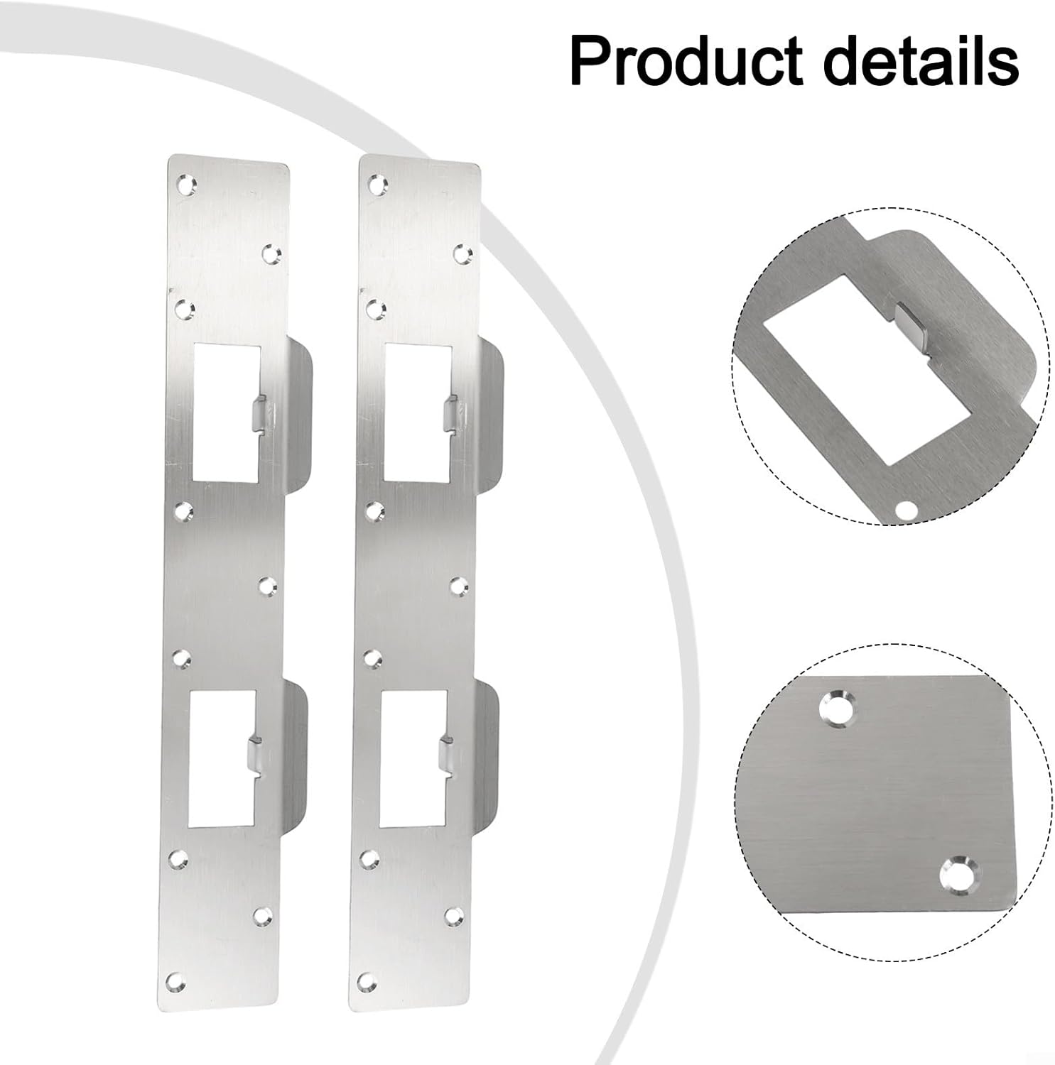 Product description Features:*Enhanced Security: The Door Strike Plate Reinforcement Plate features a robust design that replaces standard strike plates, providing superior for protection against forced entry and enhancing the overall security of your front door. *for Construction: Made from 0.08-inch thick steel, this strike plate is engineered for long-lasting performance,for ensure reliable for protection against break-ins and door kick-ins, making it good for both front and exterior doors. *Easy Repair Solution: This door reinforcement plate effectively addresses issues with broken door jambs, covering flaws and damaged areas with its extended length of 11 inches, leaving your door looking as good as new while adding for structural integrity. *for Hole Design: Featuring a large for caliber hole configuration, the strike plate accommodates locks with 5-1/2 inch to 6-inch hole centers, allowing for seasonal ground movement and for ensure latches function smoothly throughout the year. *Simple Installation: The package includes all necessary installation hardware and detailed instructions, with nine screw holes for secure fitting, making it easy for homeowners to enhance their door security without professional assistance. Specifications:*Product Name:Latch plate*Material:Stainless steel*Size:Length 11 inches*Color:Black/SilverPackage Content:2 * latch plate Manufacturer Contact Information no