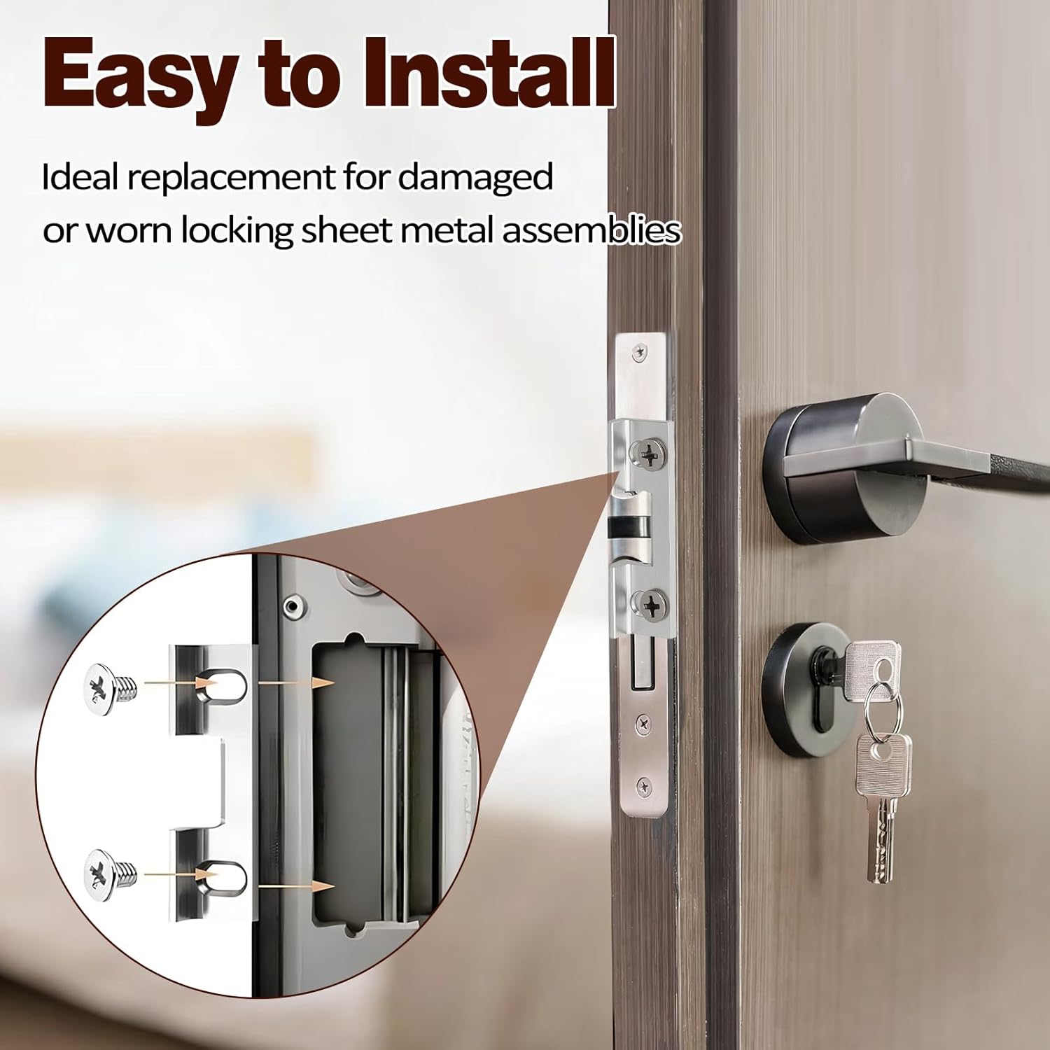 JYYWTSI replacement piece type 115 for strike plates 46 x 14.4 x 9 mm adjustable strike plate, 32 mm screw hole spacing screw-on piece for standard metal door openers with screws Product description: This front door strike plate is as a replacement piece. Type 115 and is suitable for recessed main strike plates with recess. It is used to replace worn or damaged components in the area of door opener and door latch and helps the front door close cleanly, quietly and reliably. Thanks to the precise shape, the strike plate fits perfectly into existing door frames and supports the stable function of the entire door lock system. With its compact dimensions of approx. 46 x 14.4 x 9 mm and a screw hole spacing of 32 mm, this front door strike plate corresponds to a widely used standard in the German market. It is compatible with many standard door opener and door catches front door constructions and can be used for repairs as well as in the targeted retrofitting of existing doors without the need for extensive adjustment work on the door frame. Made of aluminium alloy and equipped with an oxidised surface, the locking plate offers a balanced combination of low weight and high stability. The surface treatment increases resistance to corrosion and rust and protects the component from premature wear. This makes the strike plate also suitable for doors that are frequently opened and closed daily, such as in residential buildings, rental properties or heavily used auxiliary rooms. The construction with two oval slots allows flexible fine adjustment during installation. This allows the position of the strike plate to be optimally adapted to the door latch and door opener to avoid tension, grinding noise or unclean closing of the door. The installation is easy with the included screws and is suitable for DIY enthusiasts as well as for maintenance work in the field of window fittings replacement parts and door fittings. Material: Quality metal. Package size: 1 x 5 x 2 Package weight: 20 g