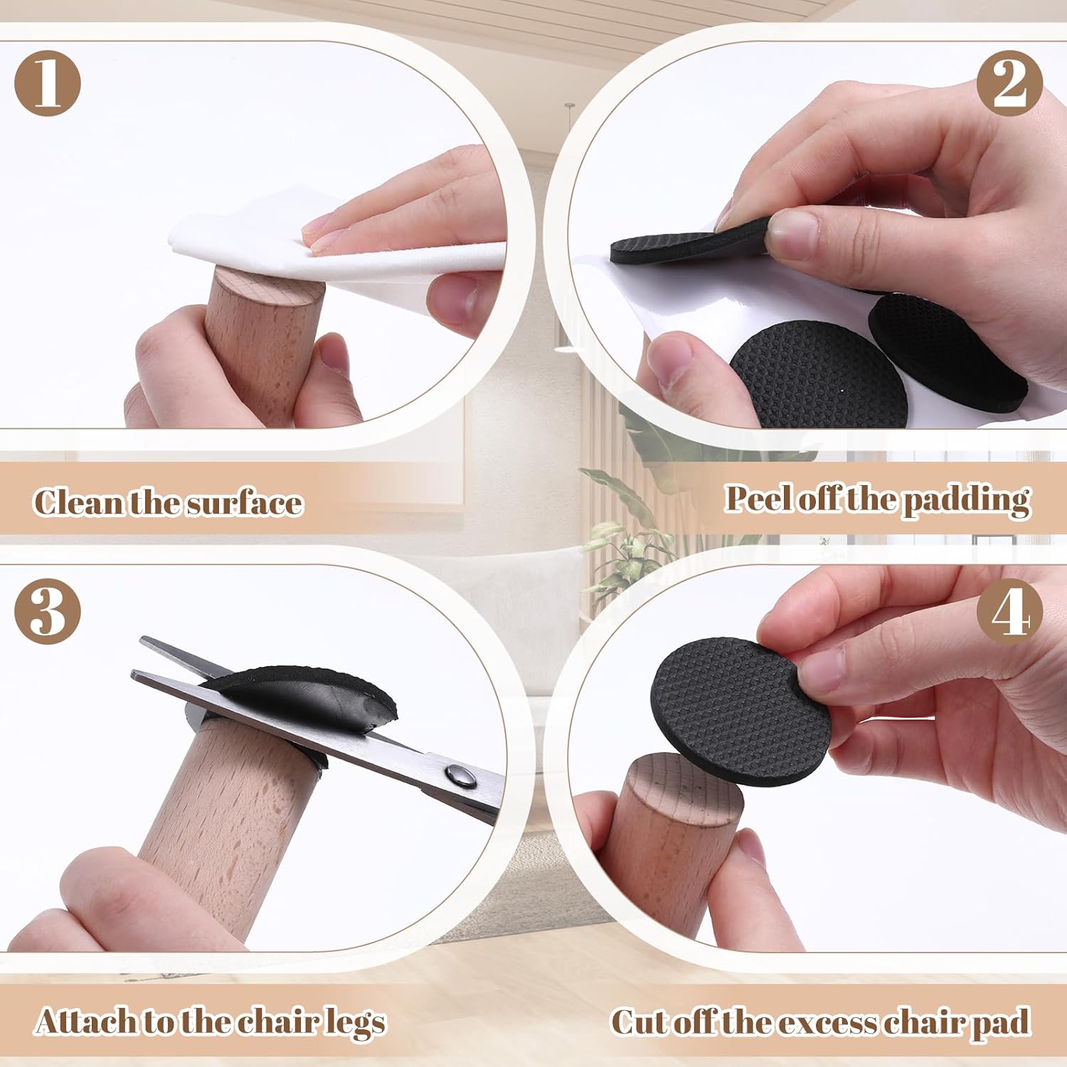 Package included: 93 x EVA table and chair feet, sound-absorbing and shock-absorbing. Material: EVA Colour: black. Weight: 54g Product dimensions: see package contents. Packing size: 27 × 20 × 1.8 cm.