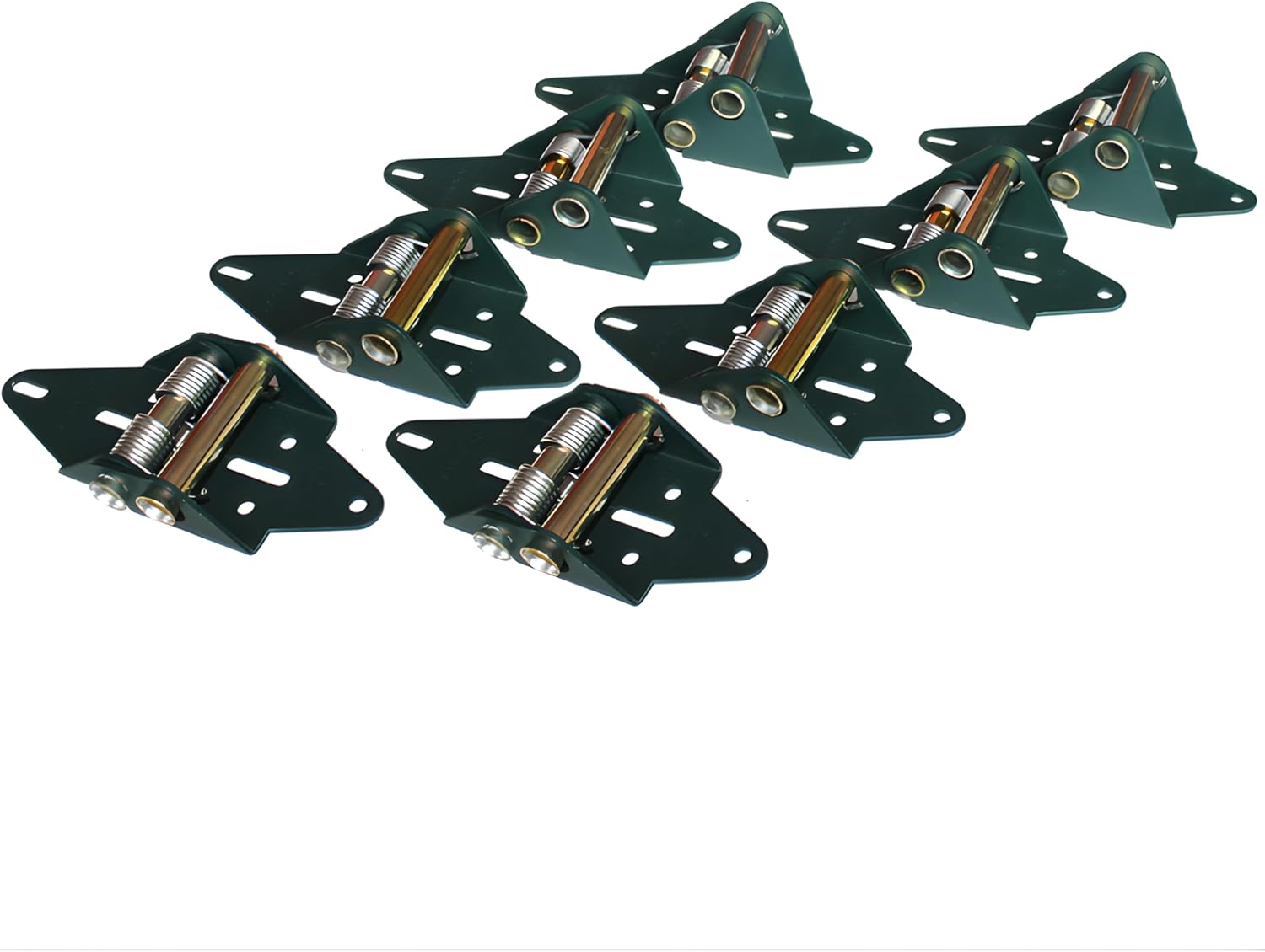 Green Hinge System | Professional Garage Door Sealing Hinges for 4 Panel Garage Doors | Silver Springs For Doors UNDER 12 feet wide | Energy Saving | Heavy-Duty 12-Gauge Steel | Made in USA -- GarageDoorProject proudly offers the Green Hinge System — the most advanced, energy-saving hinge system ever designed for residential overhead garage doors. This patented spring-loaded hinge replaces traditional center hinges and creates a tight, automatic seal every time your door closes. By eliminating air gaps and stopping drafts, the Green Hinge System helps maintain garage temperature, protect stored items, and reduce energy costs year-round. Unlike weatherstripping that cracks, shrinks, and needs constant replacement, the Green Hinge System adjusts automatically and maintains a lifelong seal — even on uneven floors, misaligned tracks, or slightly warped door panels. This makes it the only self-adjusting, gap-eliminating hinge system engineered specifically for residential garage doors. Built from heavy-duty 12-gauge powder-coated steel, each hinge delivers commercial-grade performance while providing quieter, smoother door operation. Perfect for homes, workshops, heated garages, and hobby spaces. Installation is simple: Replace only the center hinges — never the top or bottom brackets. Single Stall Doors under 12' wide will have silver springs. Double stall garage doors 12' and wider - choose the commercial product which has gold springs. 4-panel systems use 6 hinges, 5-panel systems use 8 hinges, 6-panel systems use 10 hinges, and 7 panel systems use 12 hinges (See image diagram for proper hinge placement.) With lifelong durability, Made-in-USA construction, and a true Lifetime Warranty, the Green Hinge System offers unmatched performance, comfort, and value.