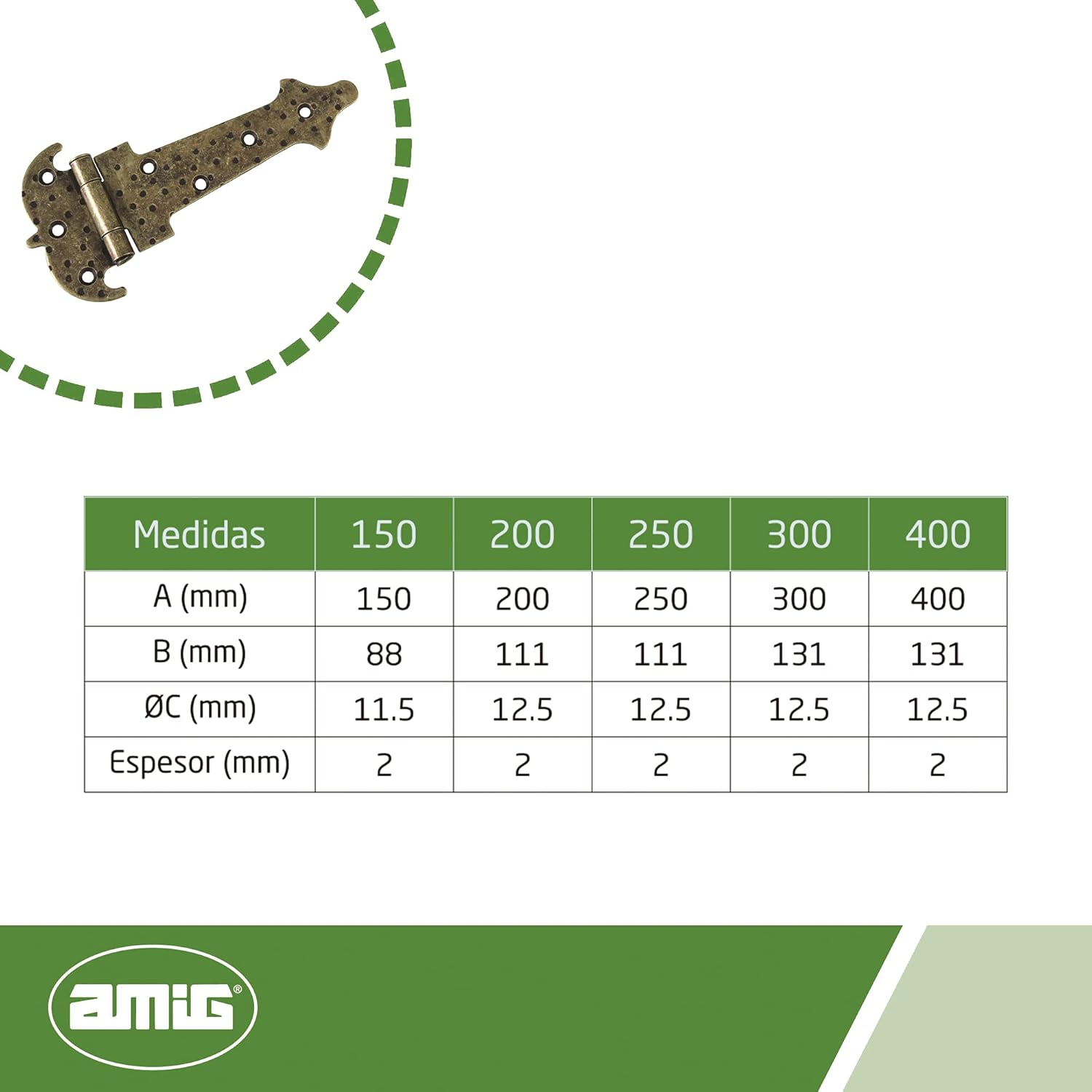 Reinforced hinge of uneven blades in leather color with hammered bottom. This type of hinge is the most widely used due to the simplicity of its installation and good performance. For proper maintenance of the hinges it is recommended to lubricate and tighten the clamping screws periodically. Cleaning the hinges should always be done with non-corrosive products, detergents, solvents or alcohols.