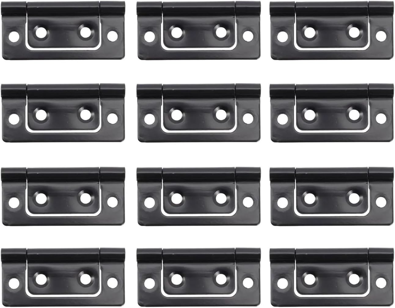 1. Fine texture, no burrs, no scratches, clear texture2. Flexible rotation, smooth opening and closing without obstruction, high tightness, no looseness3. Good bearing capacity, not easy to deform, silent opening and closing, smooth opening and closingSpecifications:Color: Black.Material: IronSize: About 5.10X2.40X2.40cm/2.00X0.94X0.94inType : Furniture HingeDescriptionThe hinges are made of iron material, which has the good bearing capacity and not easy to deform, which can allow you to open and close the door smoothly and silently, bringing you much convenience.The strong durable design and classic black color make this interior door hinge practical and versatile.It is great for building and repairing screens, doors and cabinets, multipurpose and practical.Package list:12pcs hinges