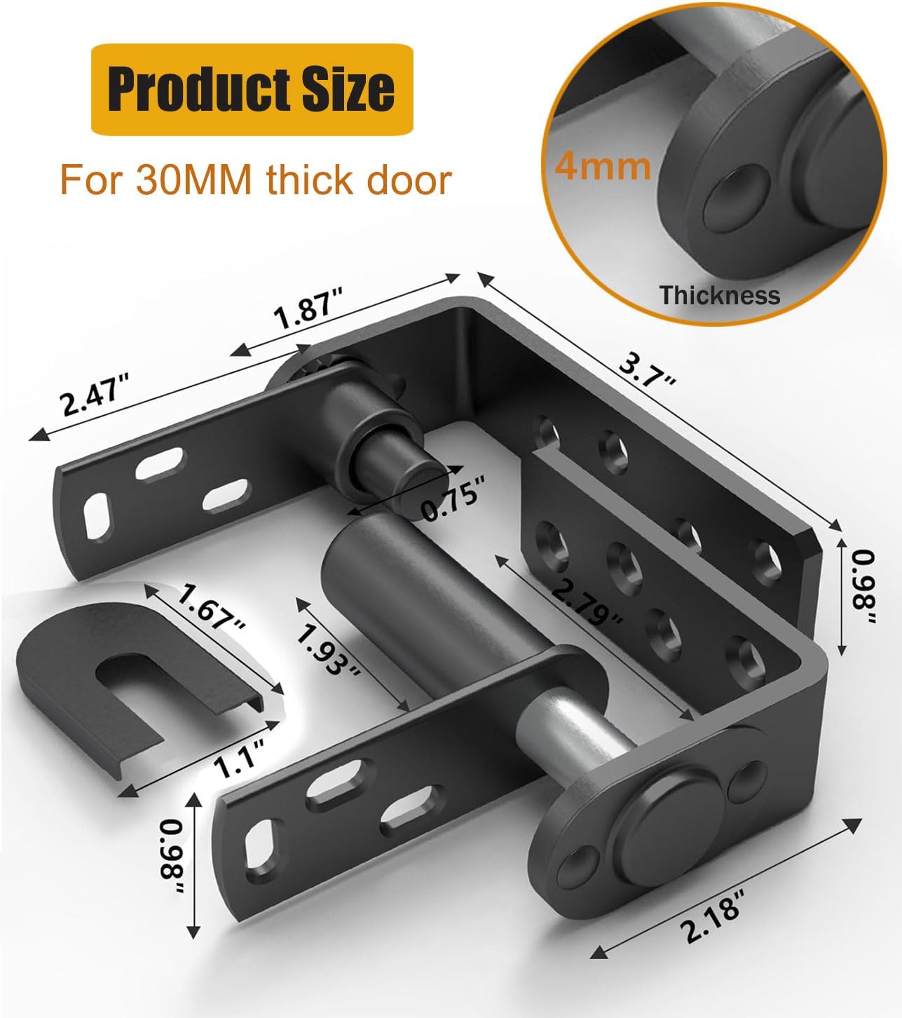 Product Description Color: Black Mounting Type: Door Mount Material: Stainless Steel Size: Big size for door thickness 30mm