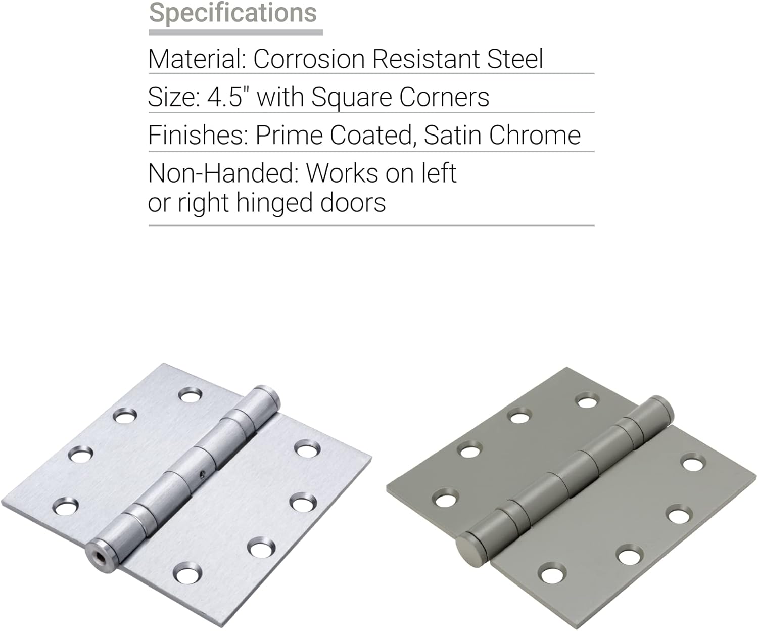 Get rid of creaky doors with this ball bearing door hinge. High quality design allows the door to open and close effortlessly and quietly. Ideal for both interior and exterior commercial door applications. 4.5” square. Durable construction and weather resistant. Template drilled holes for easy installation. Reversible for left or right-handed doors. A global leader in security-related products and services, the Brink's name is synonymous with top quality products to keep you and your belongings safe.