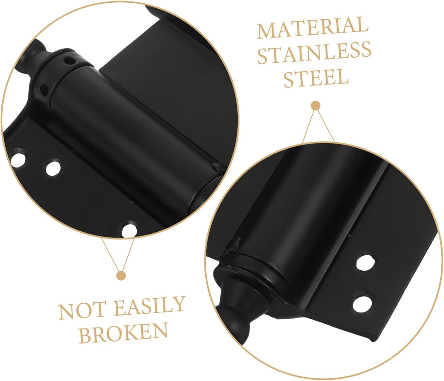 Package List 4 x Hinges 32 x screws Characteristics -Adjustable swing angle: the freeswinging design allows you to easily adjust the door's opening and closing angle, offering adjustable functionality (3-inch double spring hinges -Automatic closing feature: the double spring mechanism ensures that doors close automatically, providing added convenience and security door closing hinges. -practical stainless steel: constructed from sturdy stainless steel, these hinges offer good durability and resistance to wear (3-inch door inside hinges. - Color: Black stainless steel double spring door outside hinges -Versatile design: these hinges are suitable for a wide range of doors and windows, making them ideal for both residential and commercial applications hinges for doors - Size: 12.00X7.50X1.50cm/4.72X2.95X0.59in stainless hinges -Material:Stainless steel hinges for doors interior -Simple installation process: designed for easy installation, these hinges are ideal for both DIY projects and professional installations closing hingesGoods Descriptionkitchen cabinet hinges This feature is particularly useful in busy households and commercial spaces where doors are frequently used.self closing hinges for doors The spring-loaded design of these hinges ensures doors close automatically, providing convenience and peace of mind.(3-inch stainless steel door hinges The heavy-duty construction supports substantial weight, making them ideal for solid wood and metal doors