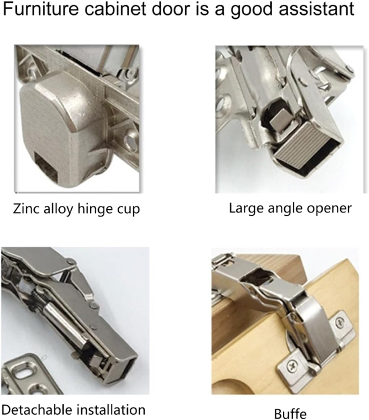 1. More convenient for daily use; the door can be gently pulled back to close, keeping the cabinets neat and organized.2. Scratch-resistant, adding a touch of design to any cabinet in the kitchen, bathroom, or home.3. Each hinge comes with mounting screws, providing everything you need for quick and easy installation.Specifications:Product Name: 165 Degree Damping HingeMaterial: SteelHinge Cup Thickness: 11.3mmHinge Cup Diameter: 35mmDoor Thickness: 16-24mmPanel Size: 3-6mmDescription:This wide-angle hinge brings cabinet functionality, it is equipped with slow-down and automatic closing functions, bringing you a convenient kitchen experience.Made of steel, it adopts zero-protrusion design to ensure that the cabinet door will not interfere with the cabinet interior when it is opened, which is ideal for full coverage applications.The hinge is suitable for cabinet lovers, simplifying installation and improving the usability of kitchen and bathroom cabinets.The wide-angle hinge can transform your storage space, and its design allows you to easily access items in corner cabinets, pantries, and any furniture that requires a large opening angle.The hinge is more than just a hardware component, it can also upgrade your living space, perfectly combining and efficiency, and complementing the trend of modern home design.Packing List:1pcs wide-angle hinge