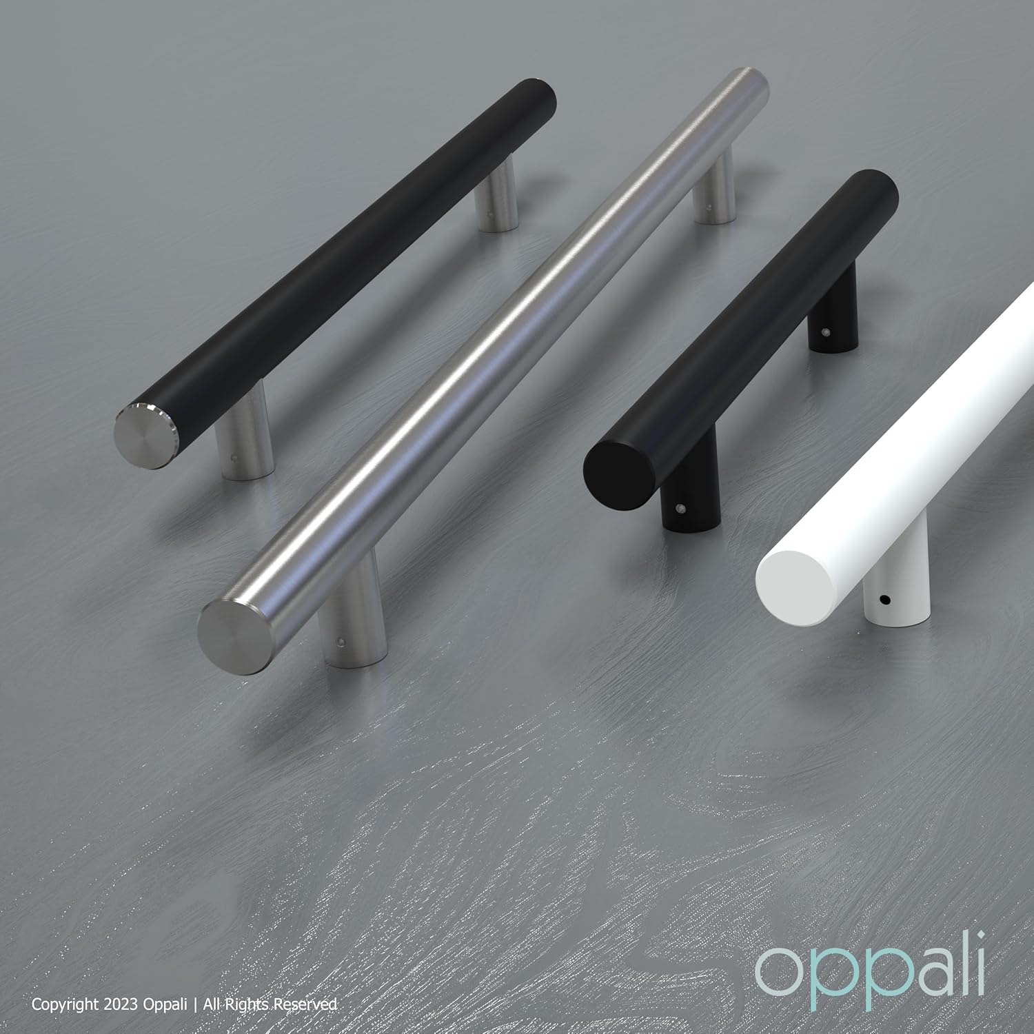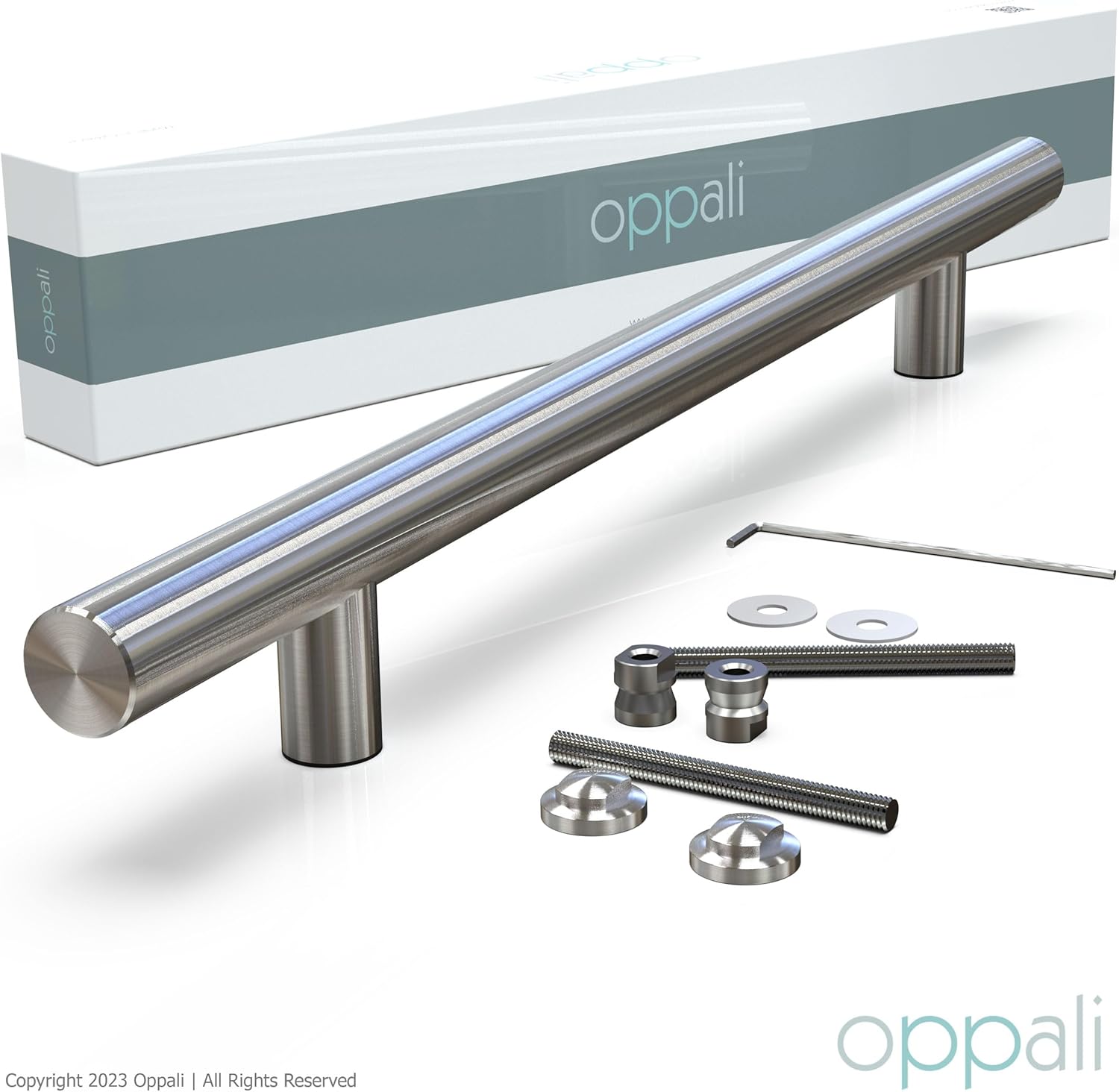 Oppali stainless steel entry door pull handles are suitable for wood, glass, fiberglass and metal doors and are available in multiple designs/finishes that range in length from 11.8in (1,8 in) to 78.8in (78,7 in). Highly-engineered 304 grade materials and beautiful surface finishing allow for installation in outdoor environments such as gates, entry doors, shoplots to indoor environments such as boardrooms, shower glass doors, conference rooms, bathrooms and bedrooms. Including matching mounting fittings for Back to Back for Shop glass doors, Shower glass doors, Sliding doors,bathrooms (One handle fixes on the outside of door and is attached to another handle mounted on the inside of the door). Also can be mounted on aluminium doors - metal doors - sliding doors - glass doors - shower doors or plastic doors as a pair of pole handles, wood and security entrance door. 10 lengths: 15.7in(16 Inches), 19.7in(19,7 Inches) 23.6in(24 Inches), 31.5in(32 Inches), 39.4in(40 Inches), 47.2in(47 Inches), 59in(59 Inches), 63in(63 Inches), 70.9in(71 Inches), 78.8in(78,7 Inches). All parts are made of Stainless Steel 304.