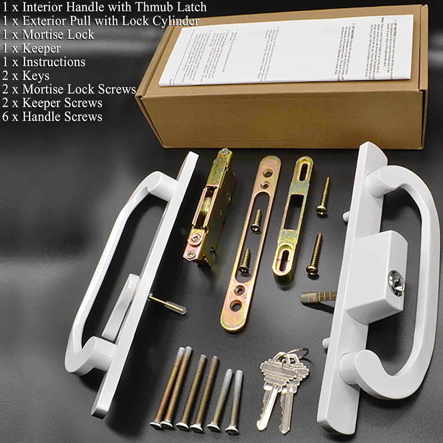 | Included Components | Interior and Exterior Pulls with Mortise Lock and Key, Installation Hardware |